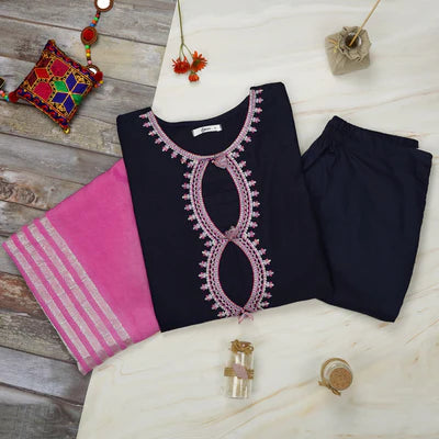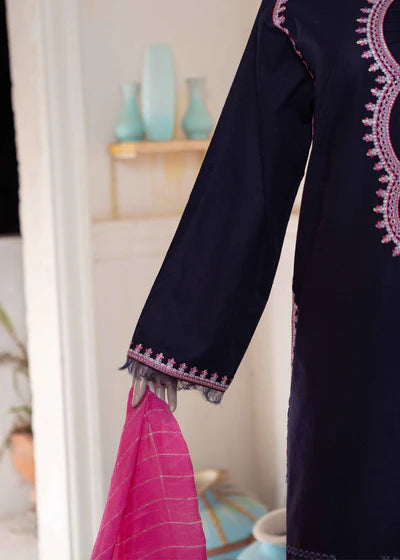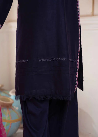 👗 Shirt: Navy blue embroidered lawn shirt for a sophisticated look