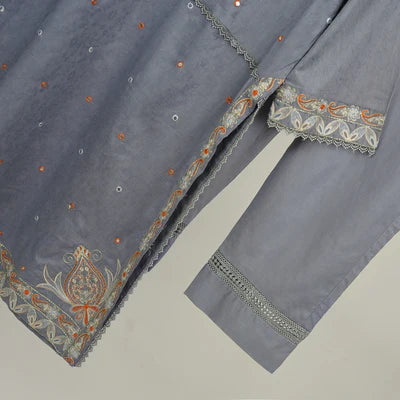 👚 Shirt: Grey embroidered lawn shirt for a sophisticated look