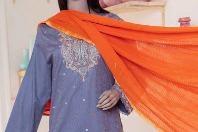 🧣 Dupatta: Vibrant orange Zari lawn dupatta to complete the look