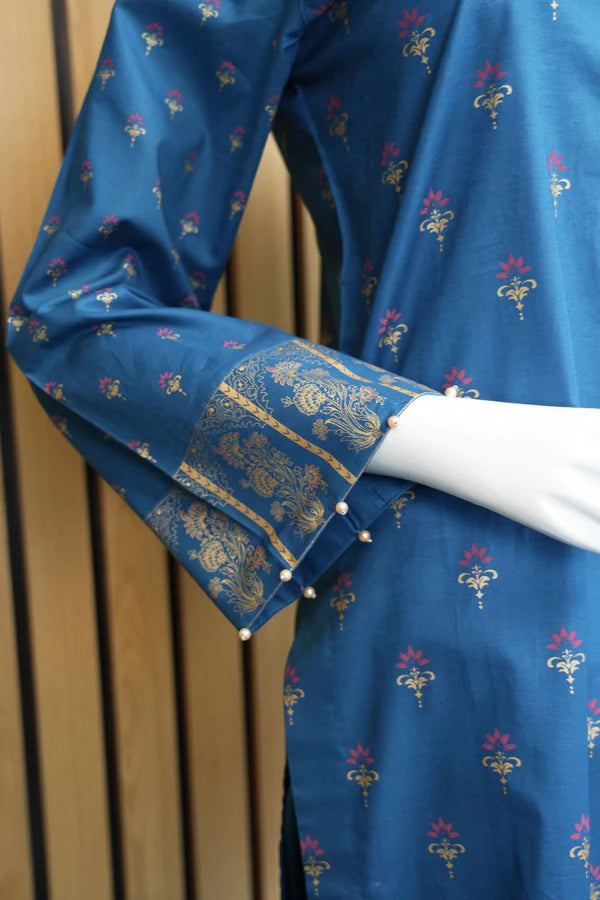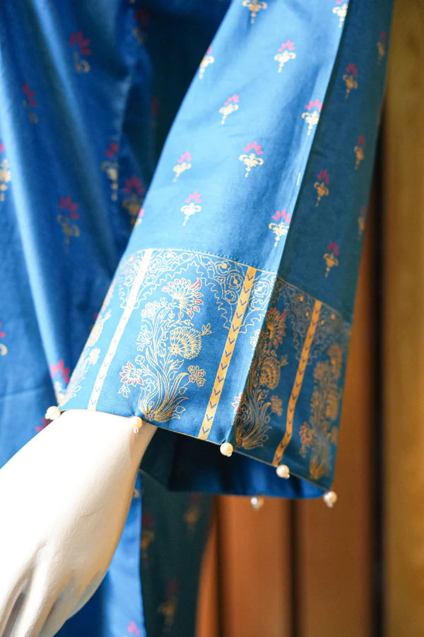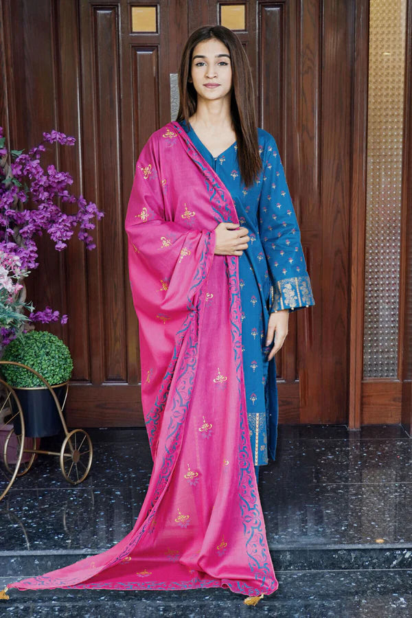 Wrap yourself in regal allure with our zinc and pink three-piece wonder. The screen printed cambric shirt, adorned with intricate patterns reminiscent of royal tapestries, elevates you to a queenly stature. Paired with the zinc cambric trouser and vibrant pink voile dupatta, this ensemble isn’t just clothing; it’s your emblem of grace and sophistication. Embrace Madiha Jahangir’s designs and become the embodiment of timeless elegance and charm.