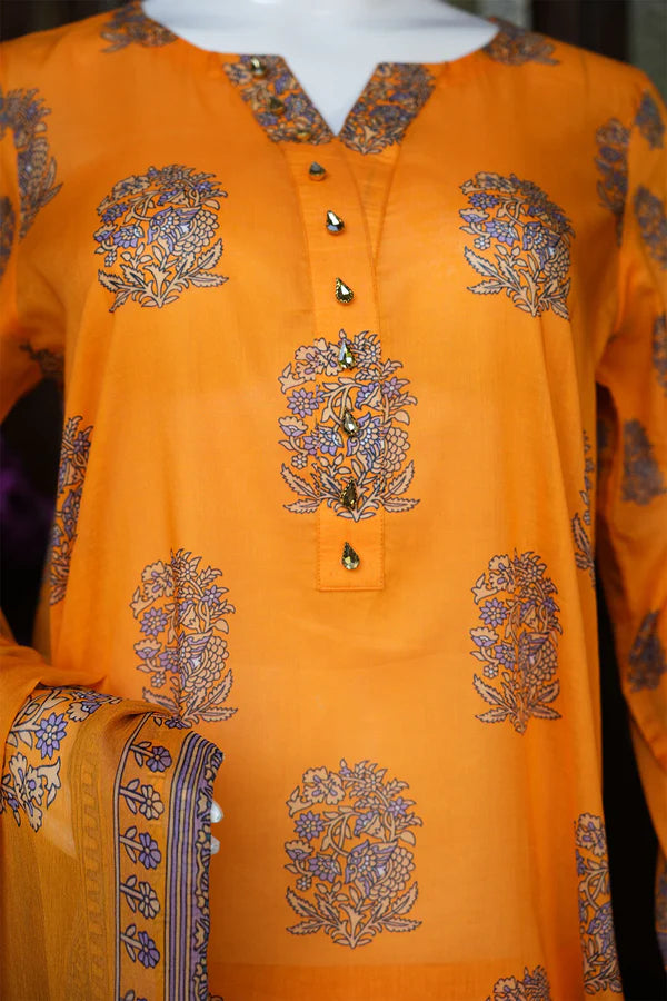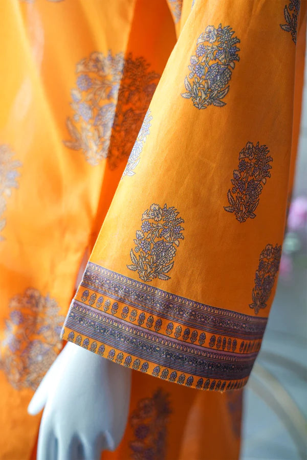 This summer staple features airjet lawn for a comfortable fit, embodying the grandeur of the sun and keeping the spirit of the summer alive. Adorned with floral patterns in a rhythmic sequence this bold choice of color instantly captivates attention. The intricate patterns on the borders of the shirt and the dupatta add to the flamboyance of the design. Whether you are wearing it for a special occasion or a casual day out, this dress will leave everyone in awe.