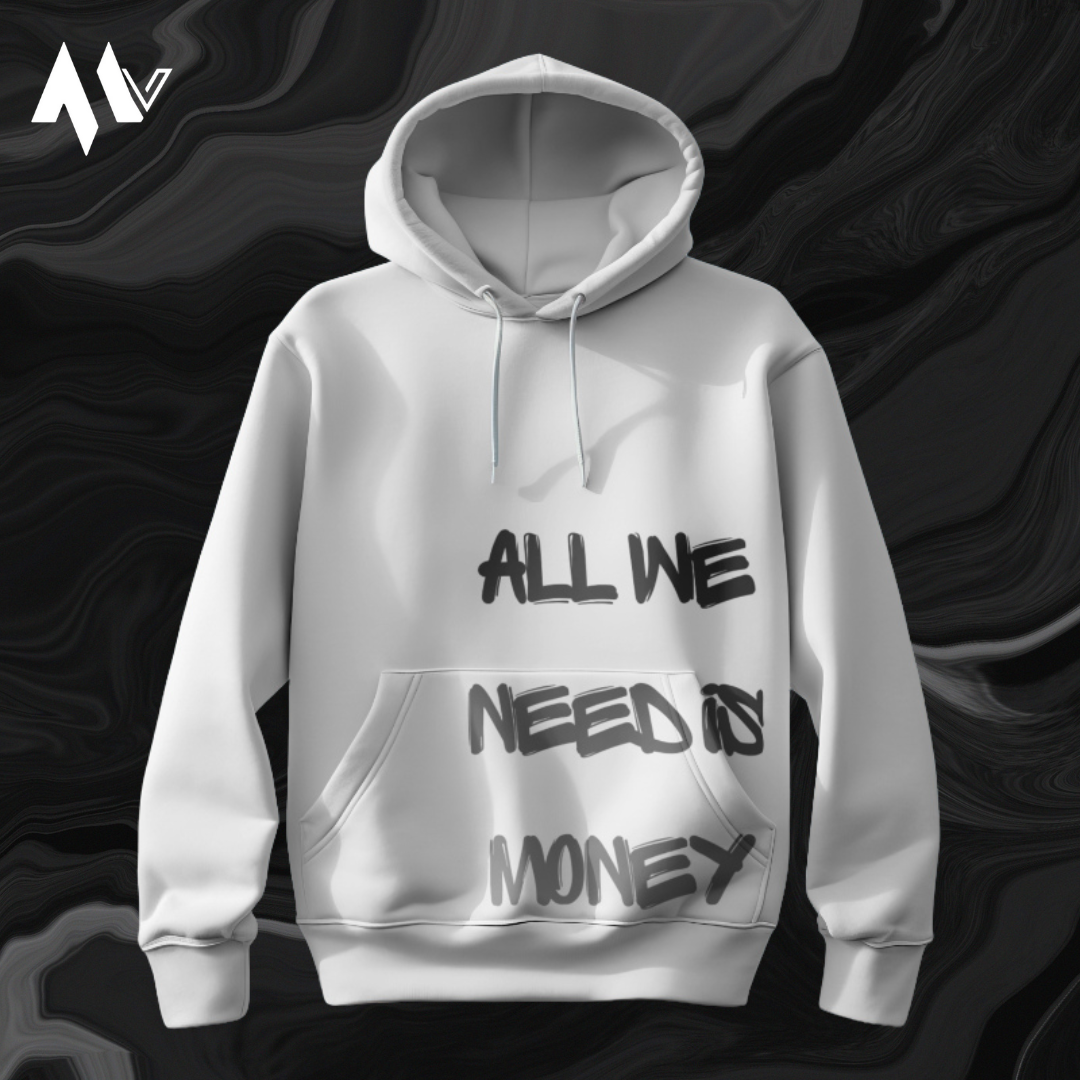 Step into the grind with our ‘All We Need is Money’ hoodie in clean, crisp white. A bold statement for the hustlers and dreamers who never stop chasing.