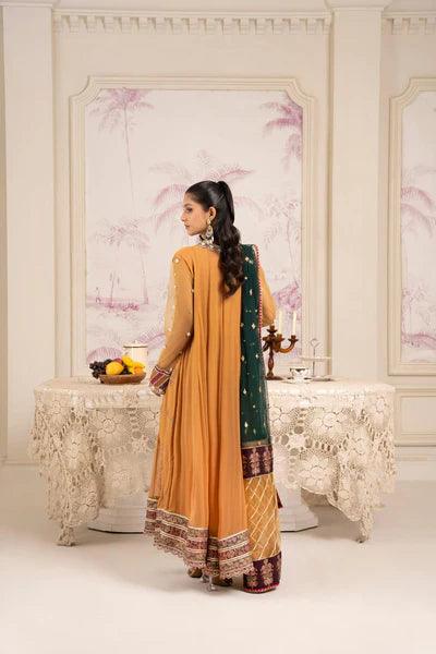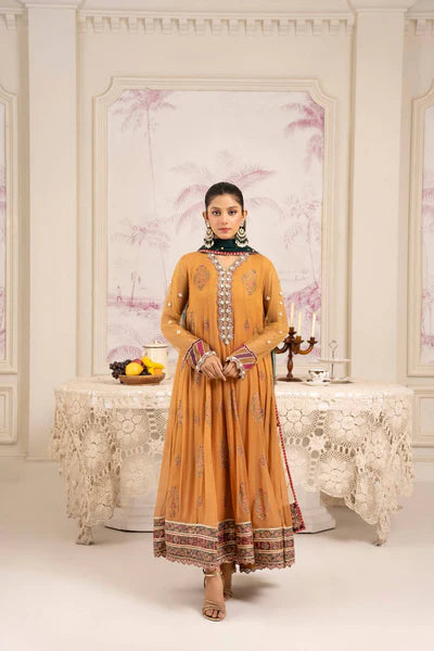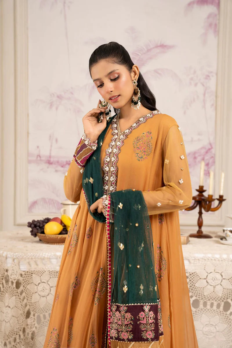 Radiating Festive Warmth And Sophistication, This Burnt Orange Hand-Embellished Chiffon Angrakha Is A True Statement Of Refined Craftsmanship. The Neckline And Borders Are Intricately Detailed With Hand-Sewn Sequins, Zari, And Gota-Inspired Accents, Exuding A Luxurious Glow. Sheer Embroidered Sleeves Add A Modern Yet Regal Touch, While The Flowy Silhouette Creates An Effortlessly Graceful Fall. Paired With A Flared Raw Silk Pant, Adorned With Lace Detailing That Adds Subtle Texture And Elegance. Completing The Look Is A Net Dupatta, Delicately Hand-Embellished With Sequins And Edged With Intricate Borders, A Perfect Complement To This Festive Ensemble.