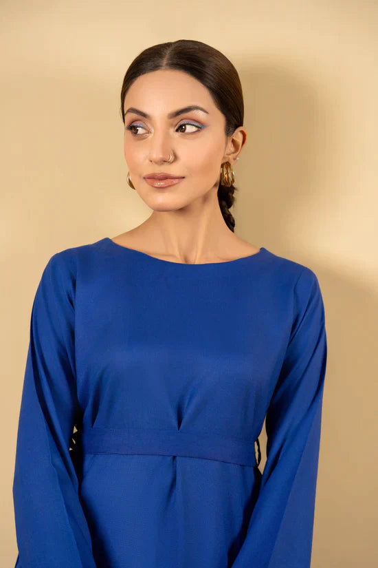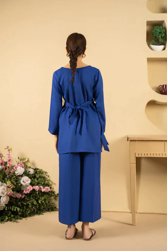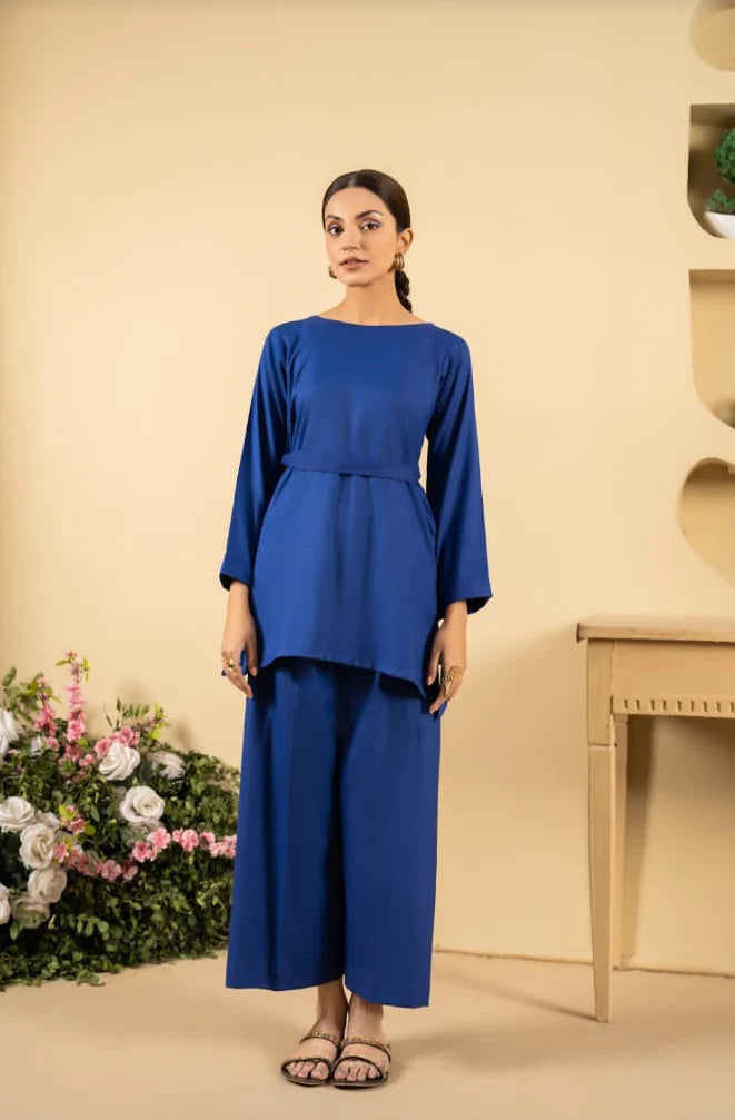 “Introducing ‘Beam,’ a winter co-ord set that radiates sophistication and warmth. The vibrant, bright blue hue transforms chilly days into a fashion statement. Crafted from cozy Marina and warm linen, the ensemble features a belted shirt paired elegantly with wide-leg trouser pants. Embrace the season in style and comfort with this radiant winter wardrobe essential.