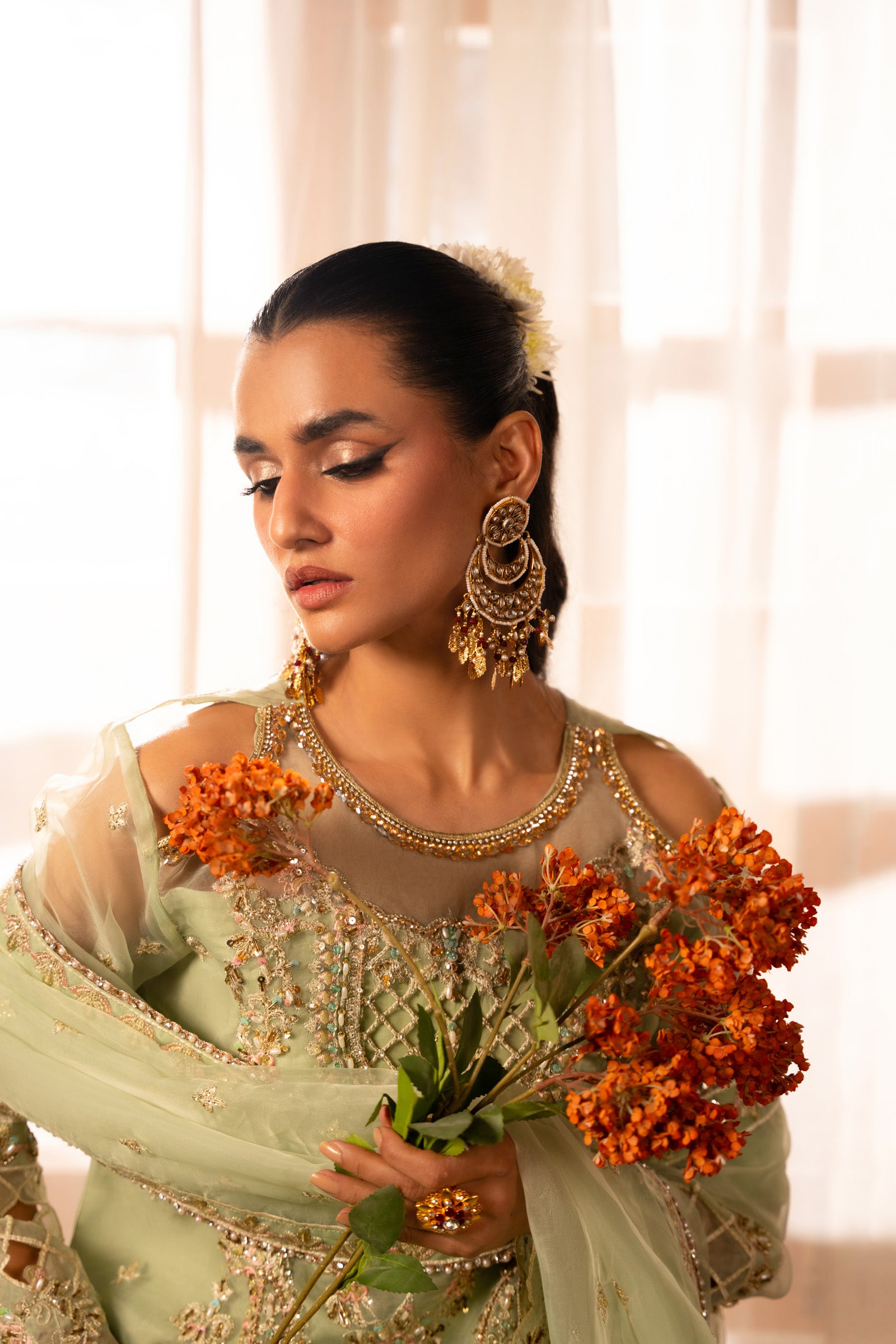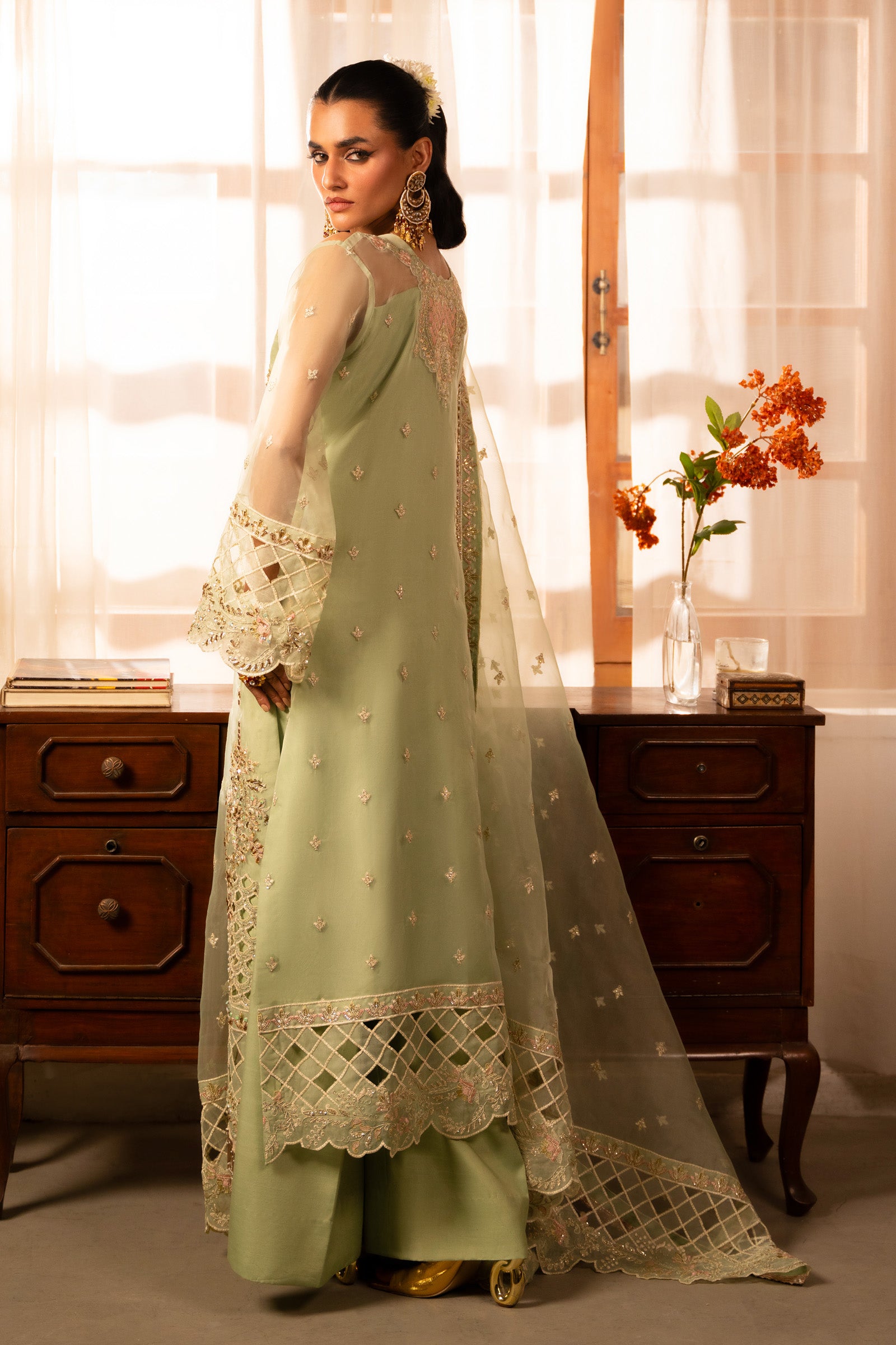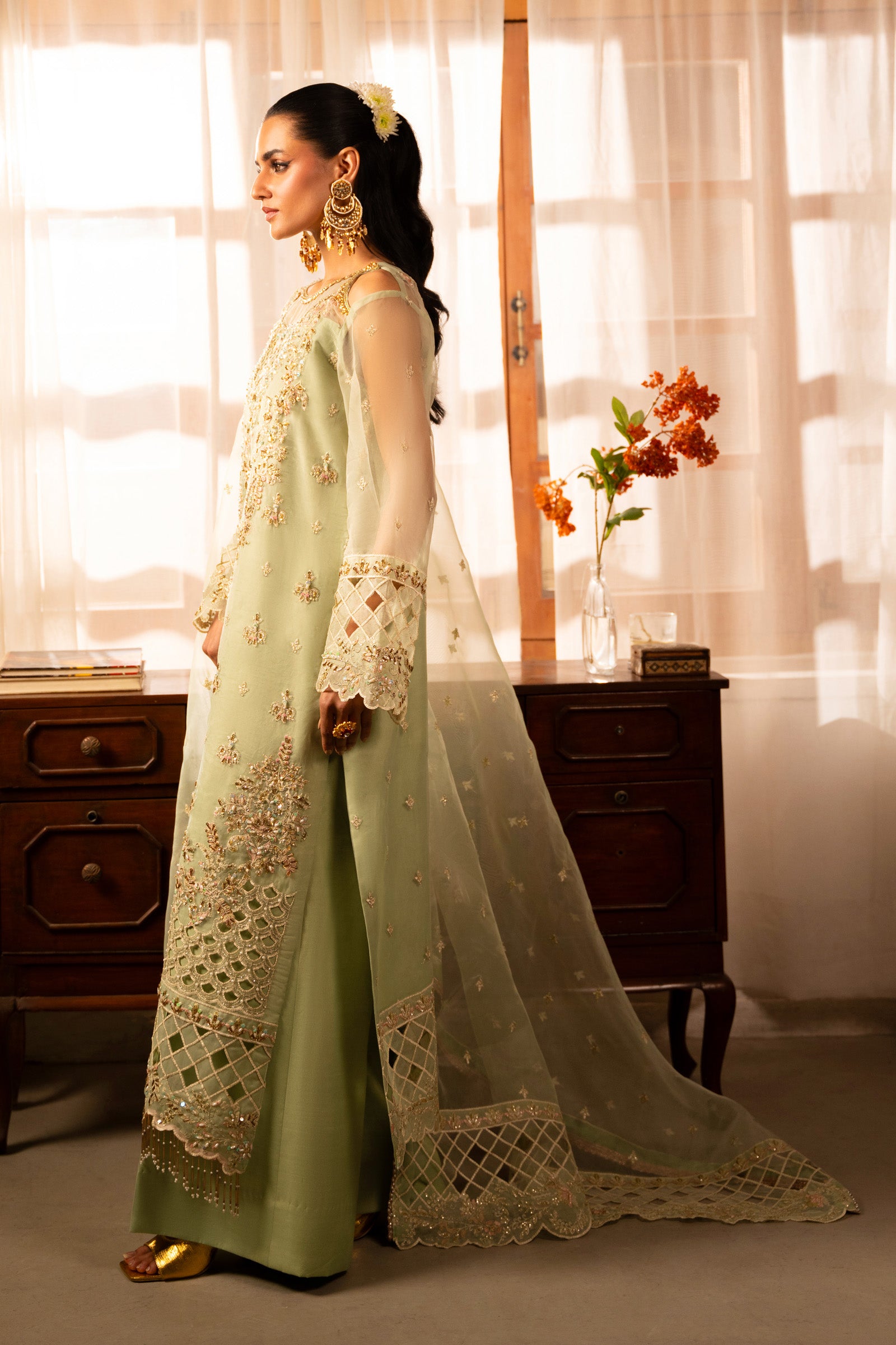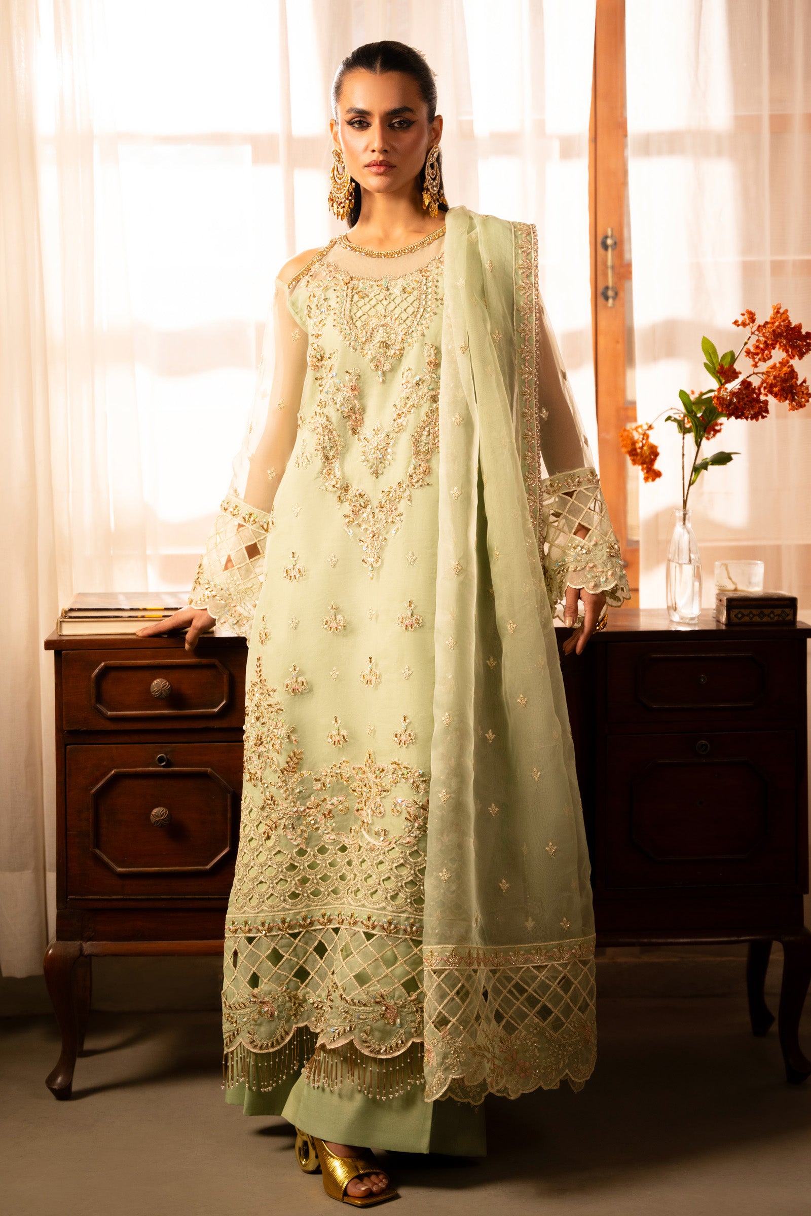 Fully Embroidered heavy sequence Front two organza panels