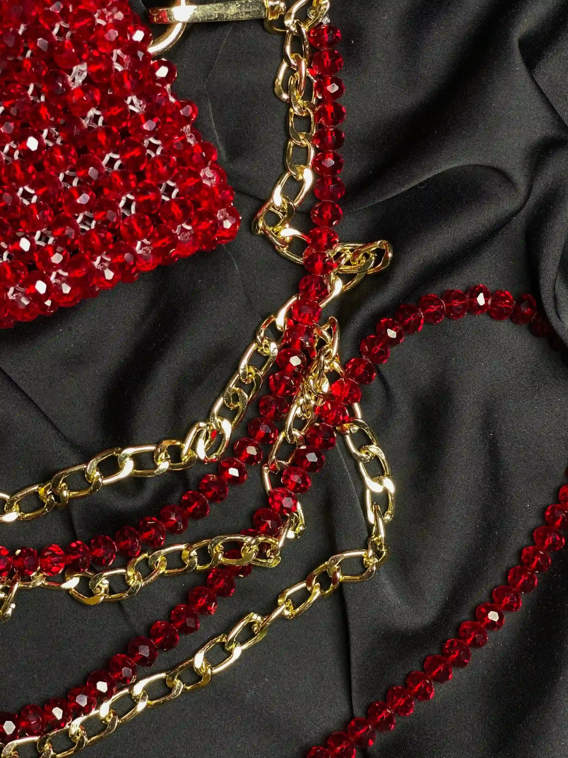 Artisan Crystals and metallic and beaded strap detailing on a setting Unlined