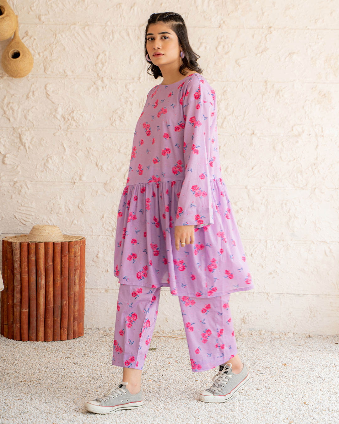 Step into a world of vibrant colours and beautiful patterns brought to life through digital printing. Feel the lightness of the lawn fabric as it gracefully caresses your skin, allowing for a seamless flow of air that creates a refreshing sensation. Get ready to radiate happiness with every step you take.