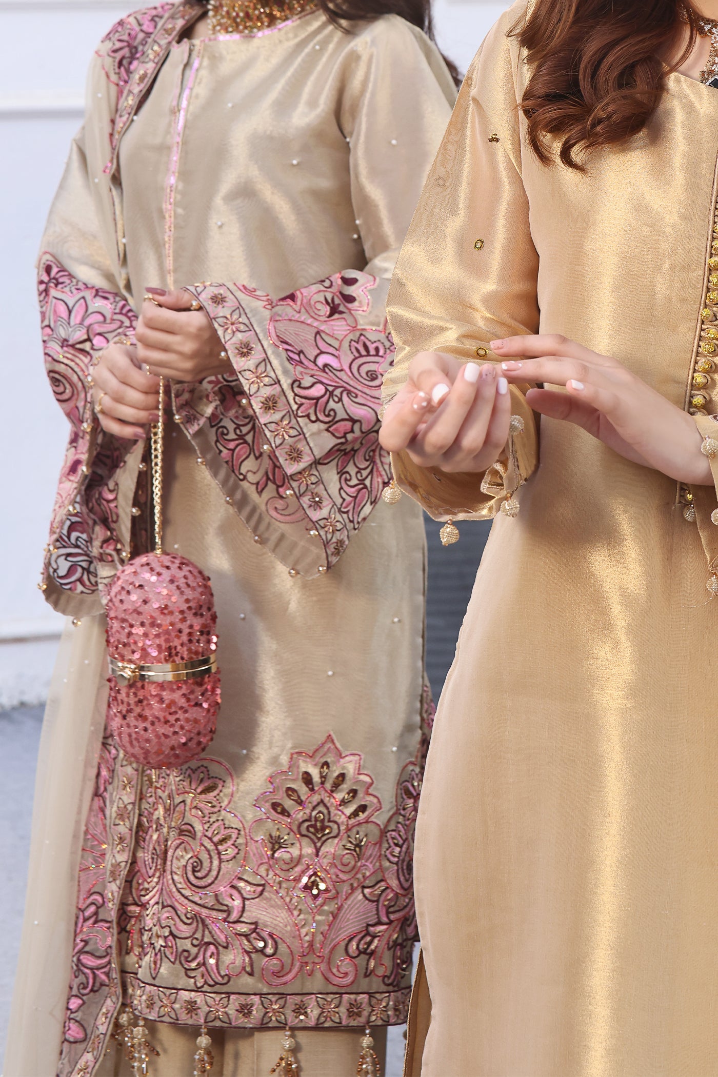 Color: Shirt & Trouser Dull Gold, Dupatta Red
