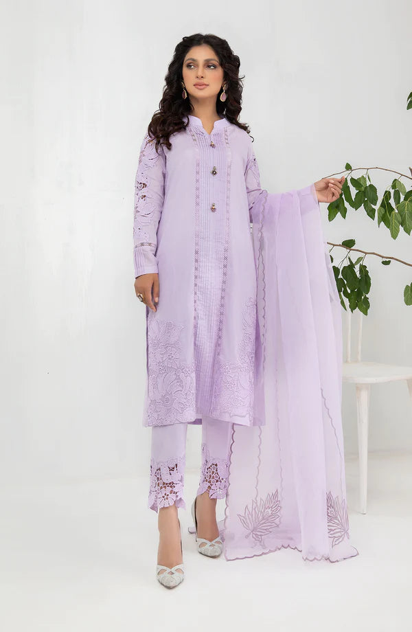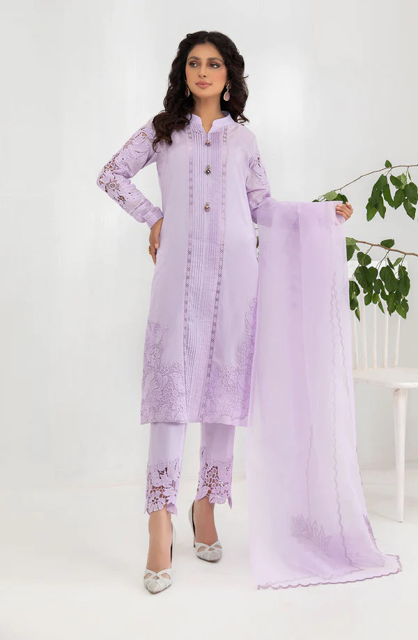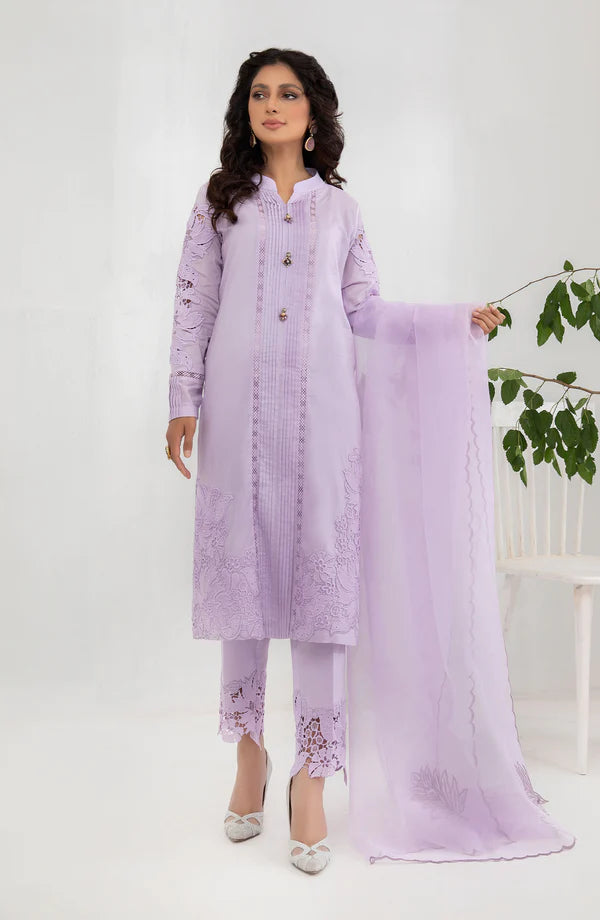 Introducing EMIKO, an elegant lawn outfit with chantle embroidery, lavender flower hues, and organza duppata with exquisite scalp embroidery to add an exquisite finishing touch. Perfect for those seeking an exclusive and sophisticated look.