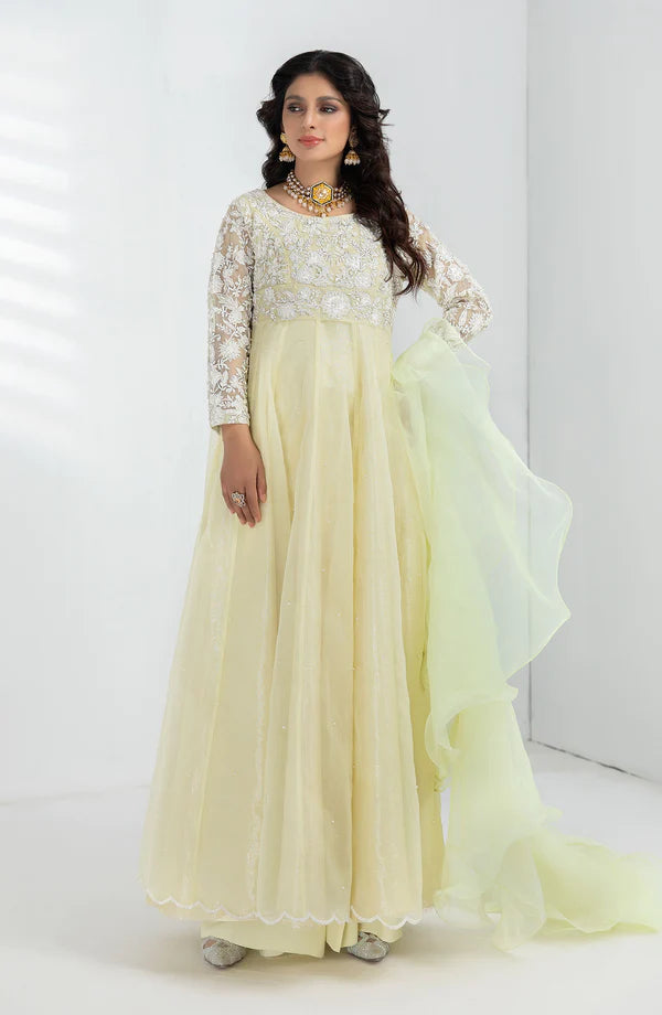 The FLEMI is a luxurious and opulent delight, exquisitely crafted to perfection. This lemon-colored dupatta is enhanced with delicate frill detailing and embellished with beautiful pearl work in the Faruk style. An inspired combination of chic sophistication and quality craftsmanship, the FLEMI is truly a luxurious statement.