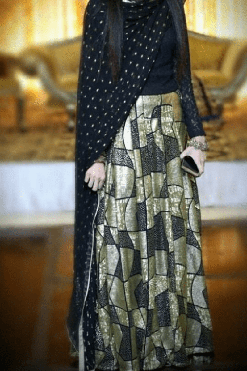 Dupatta: Graceful chiffon dupatta with a delicate black and gold finish