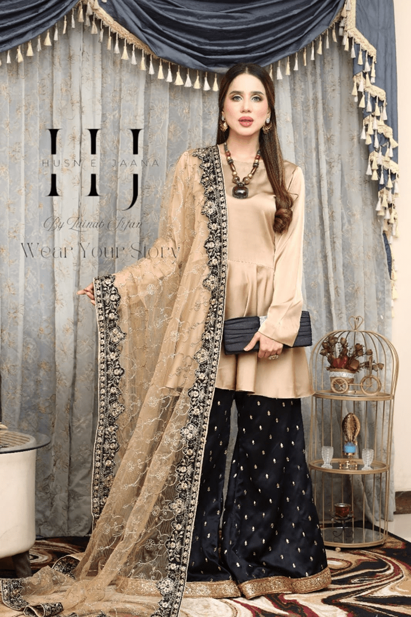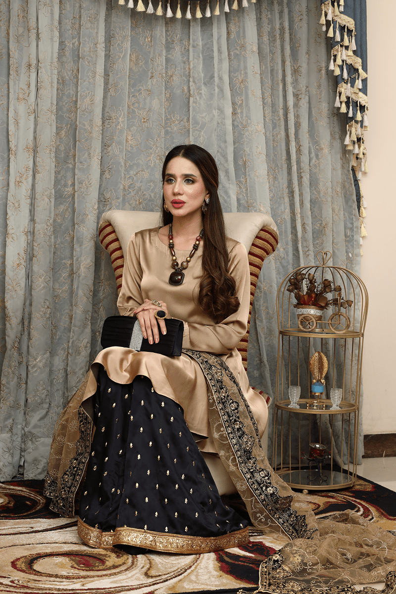 Dupatta: Heavy net dupatta with velvet borders and golden thread work