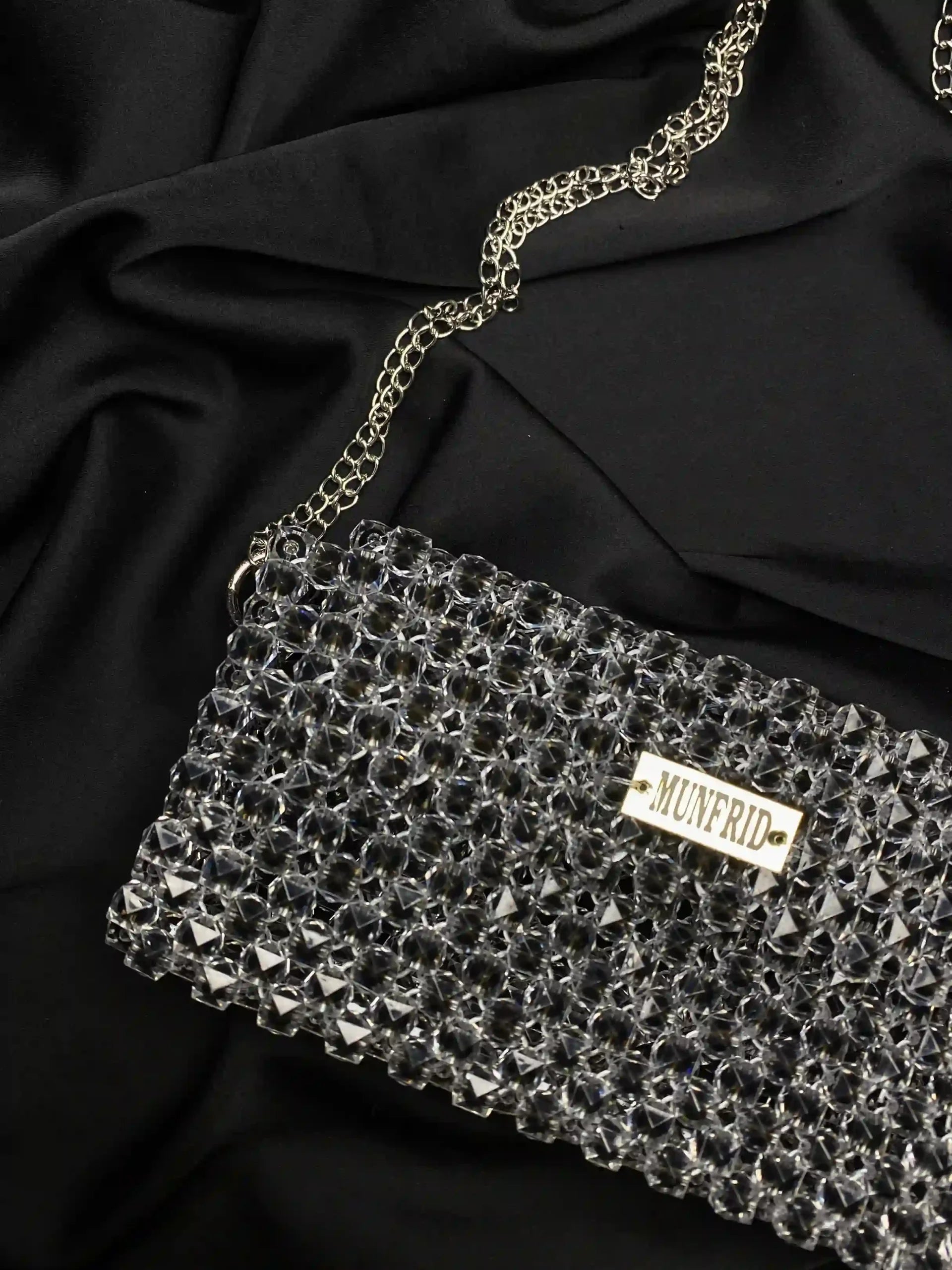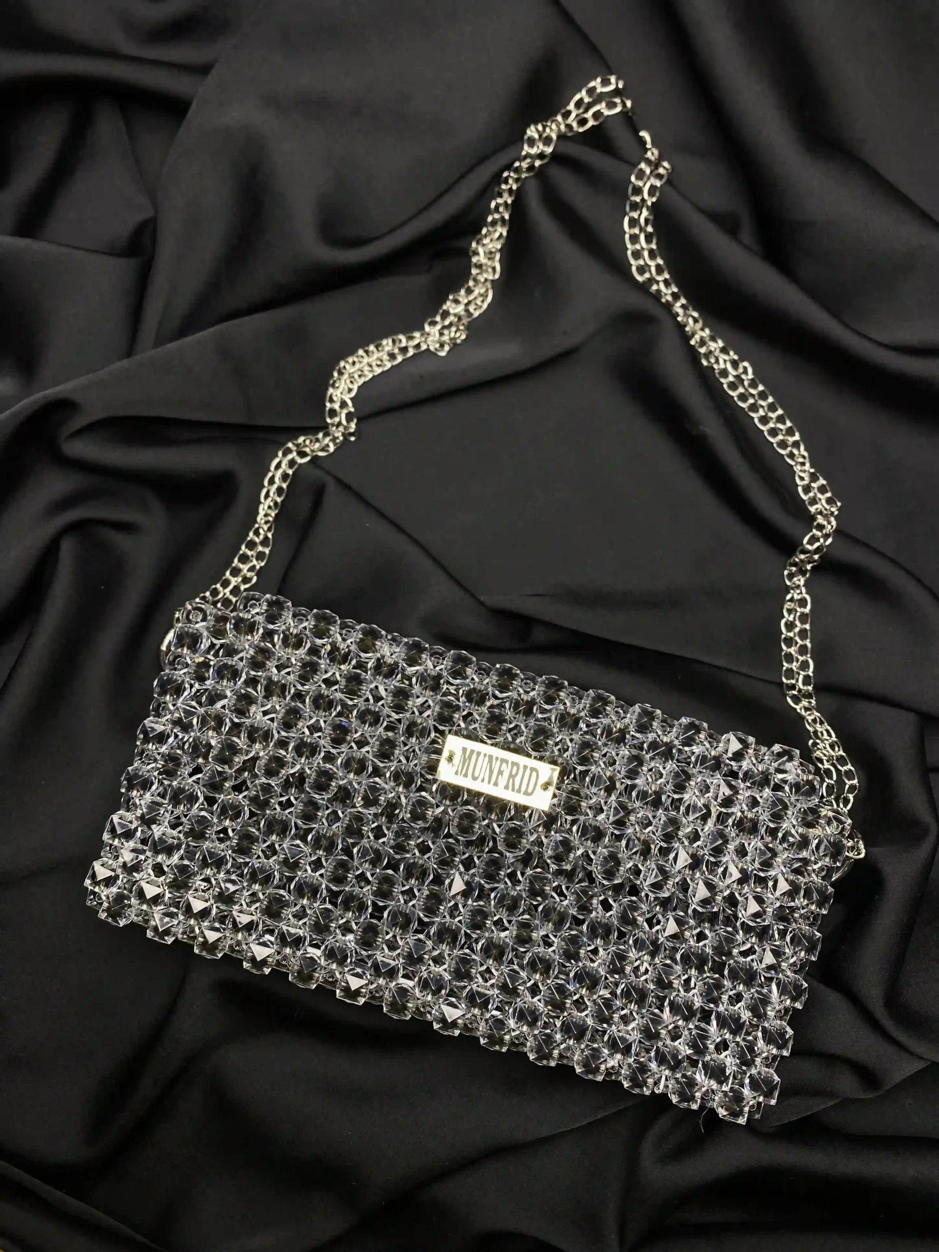 Artisan plastic pearls and metallic chain detailing on a setting Unlined