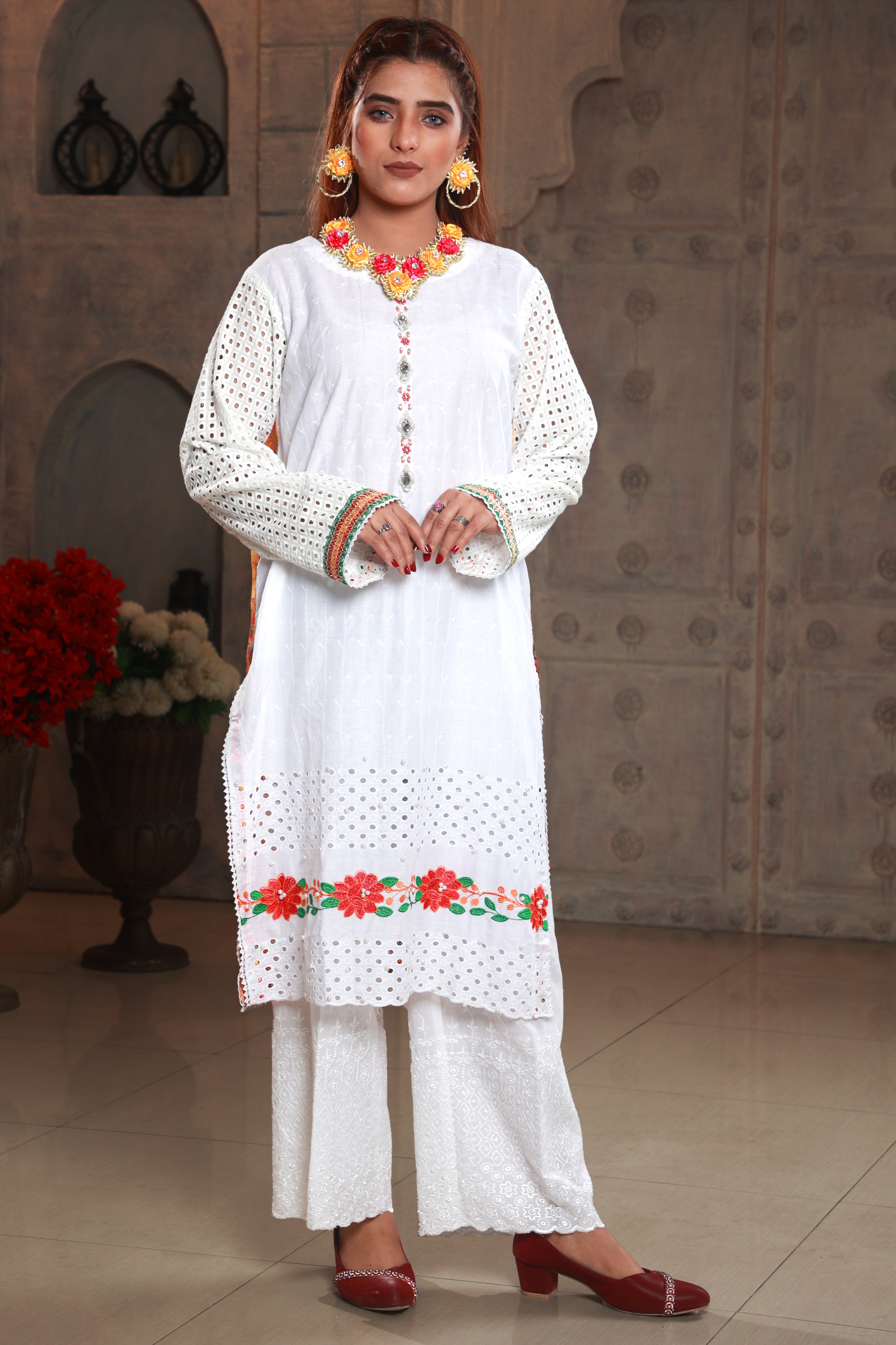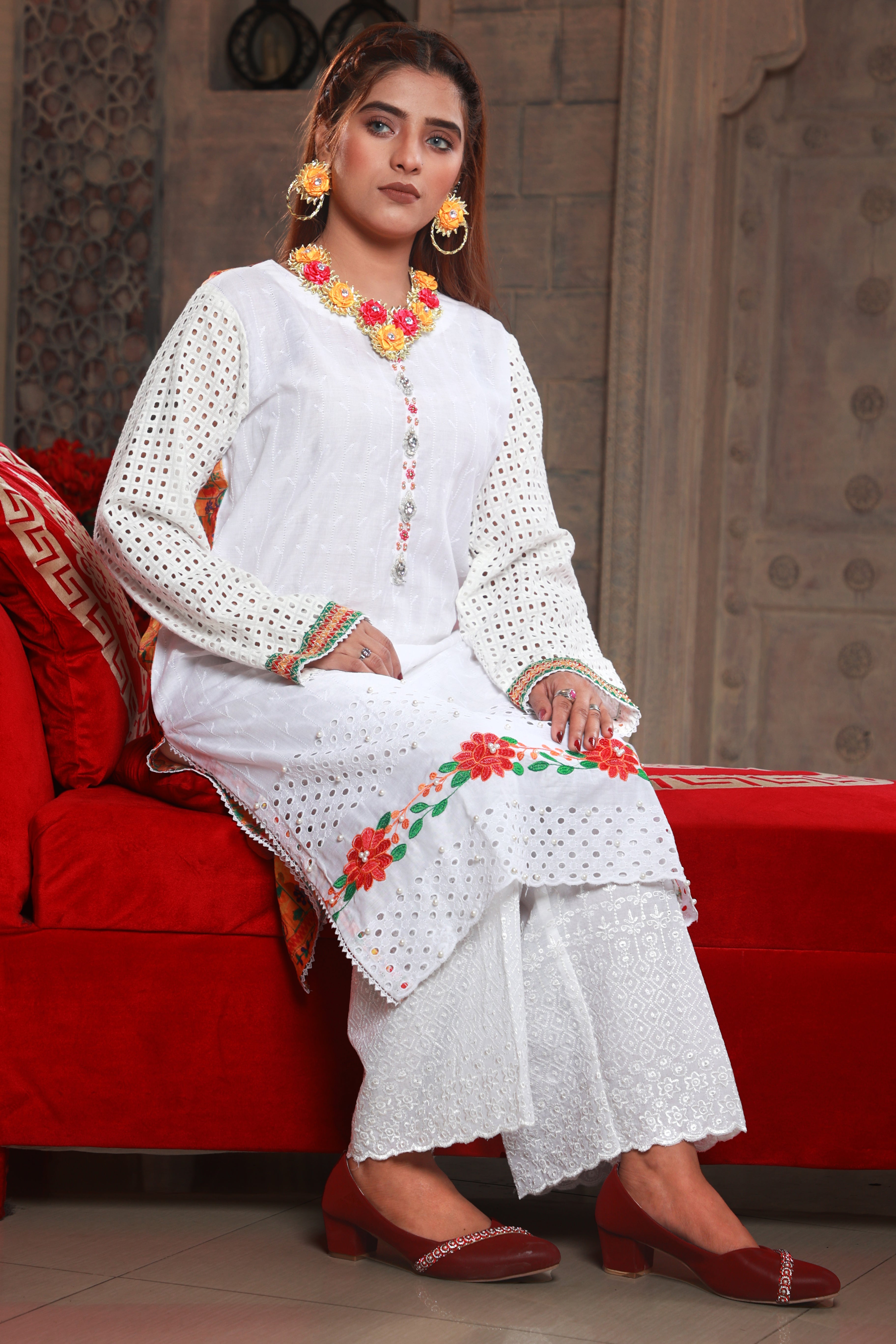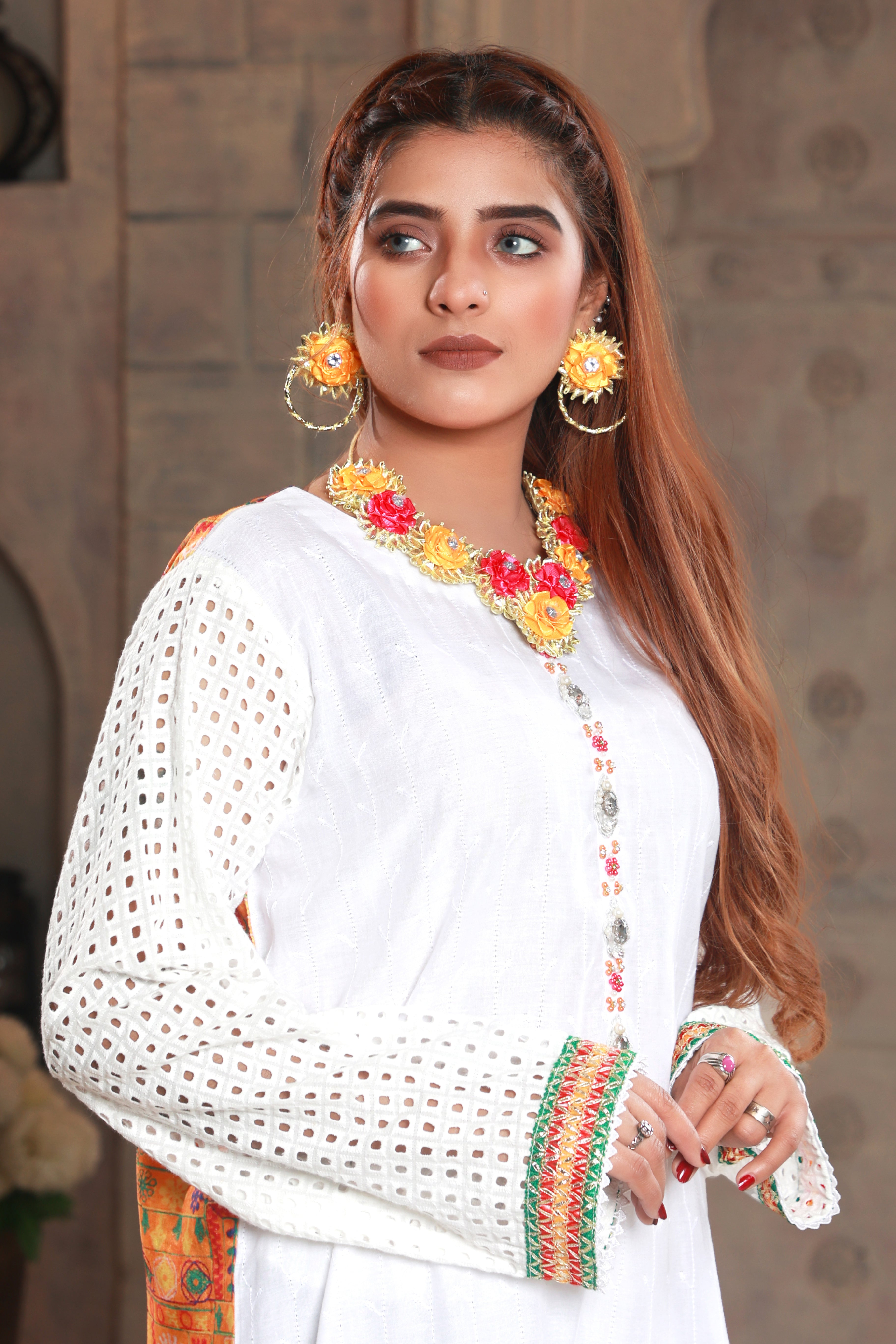 Bloom into beauty with ' Jasmine ', our vibrant embroidered lawn dress in a kaleidoscope of colors. The intricate embroidery adds a touch of whimsy to this playful design, while the lightweight lawn fabric ensures a comfortable fit. Perfect for summer festivals, garden parties, or everyday wear, ' Jasmine ' is a colorful and charming addition to your wardrobe.