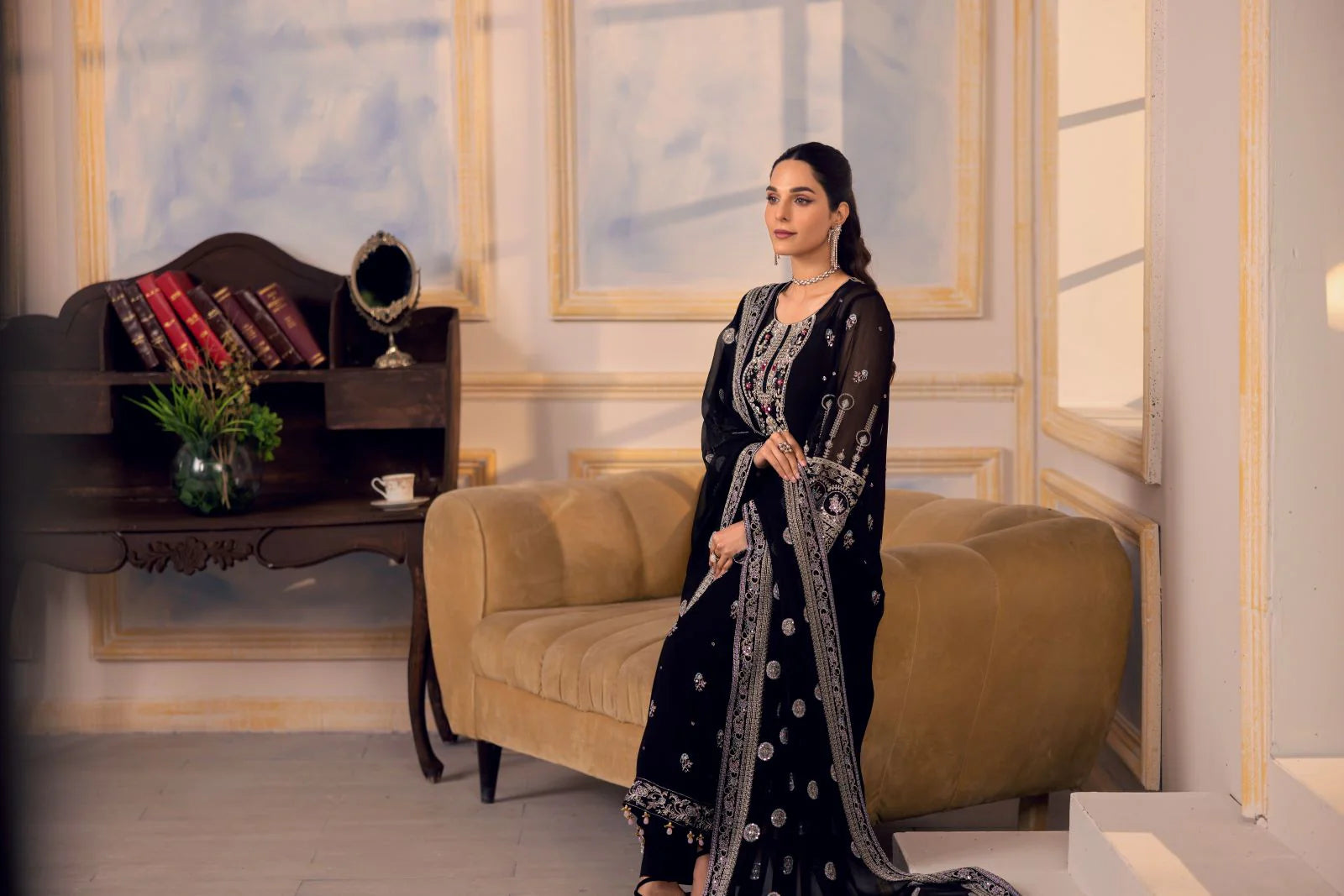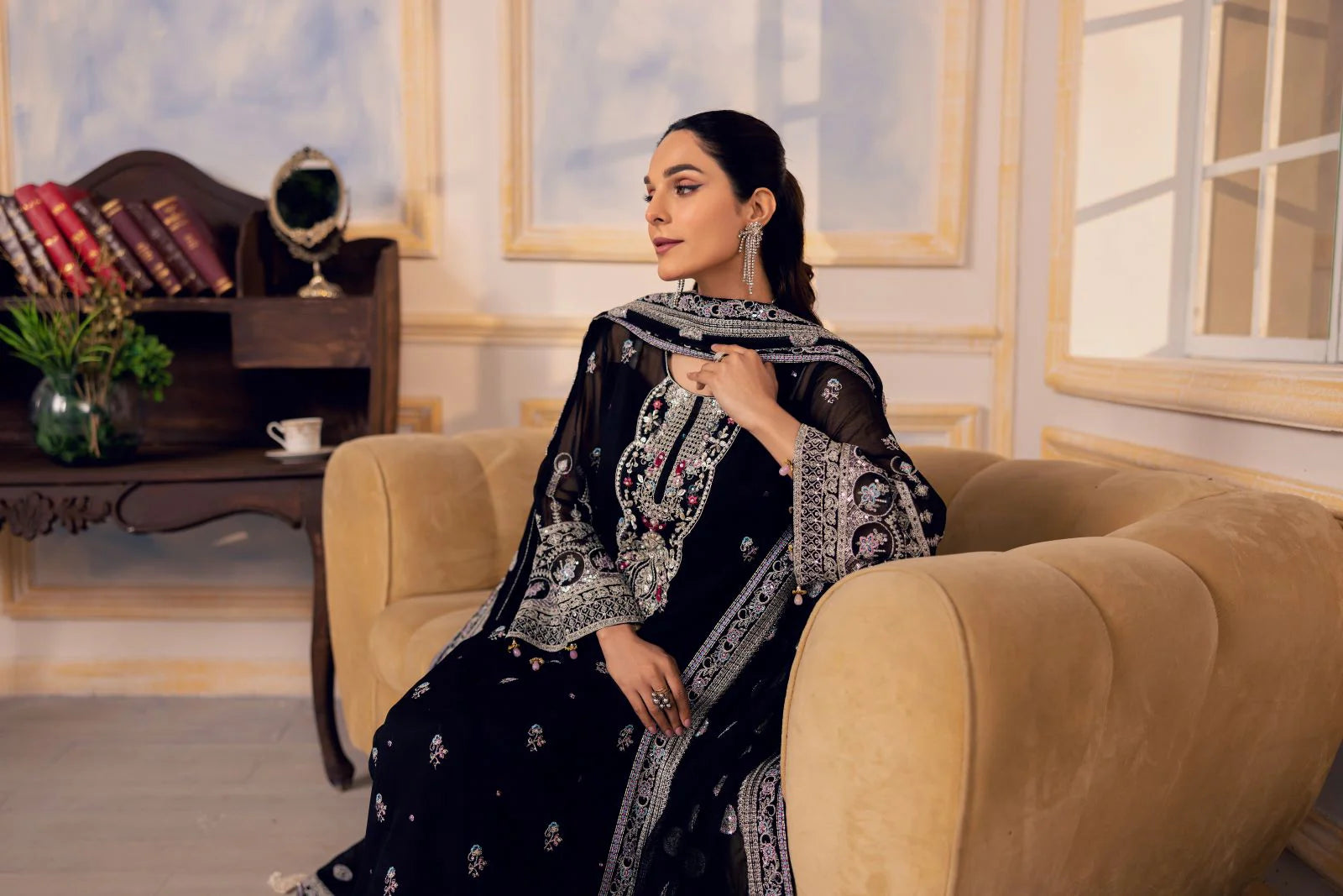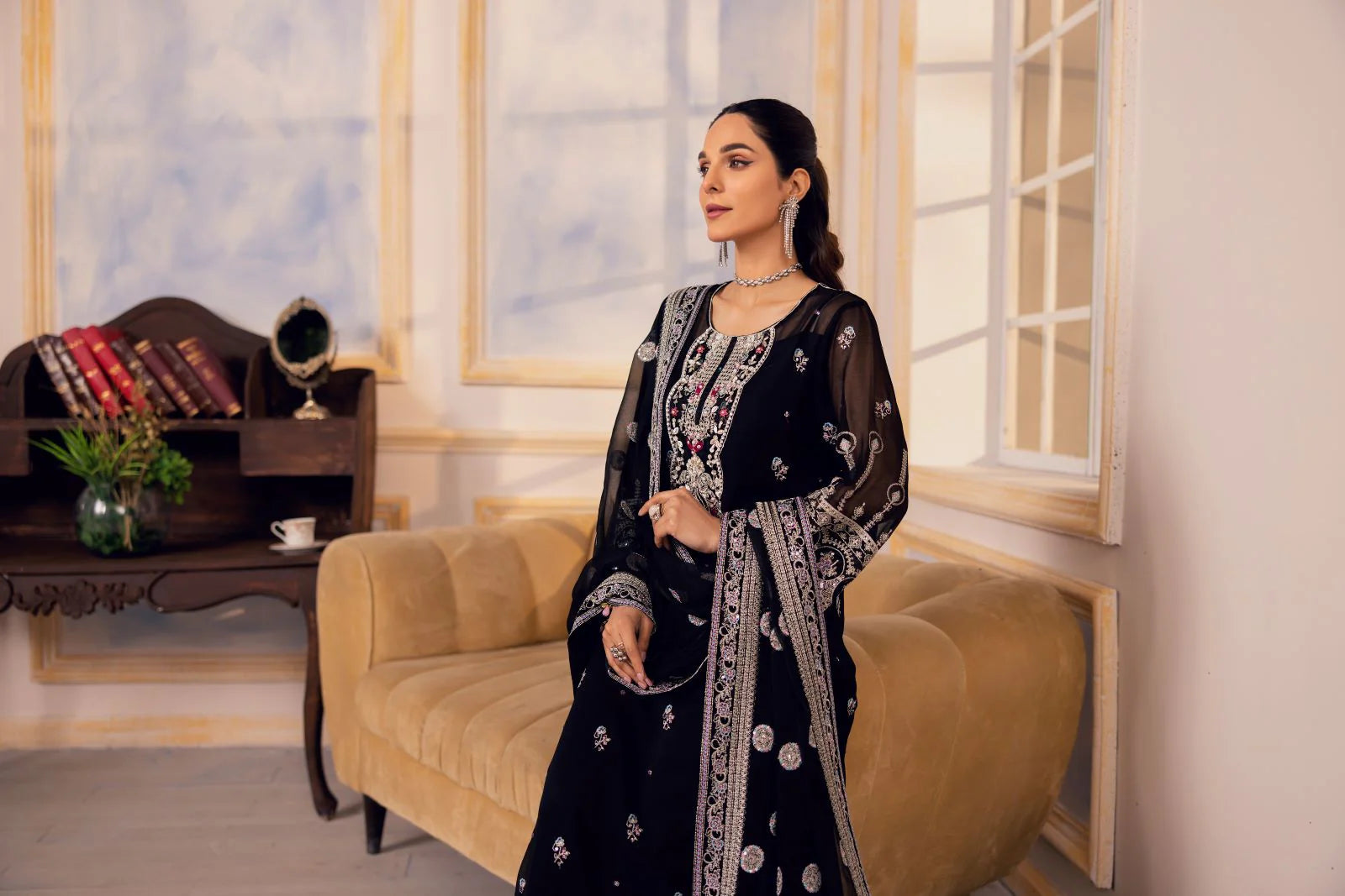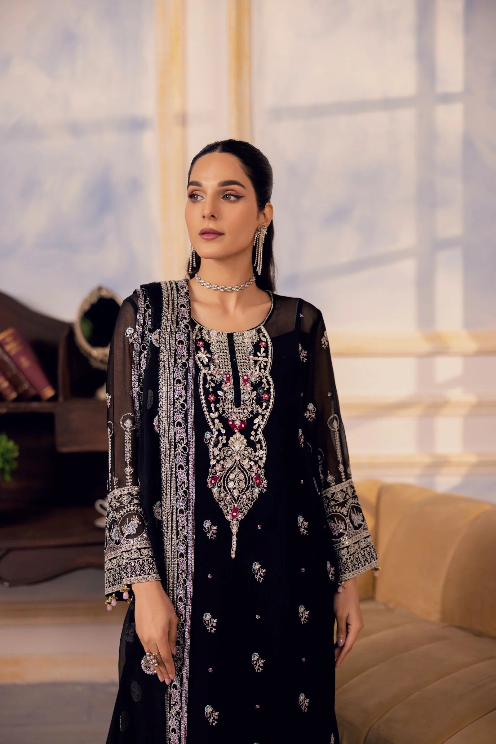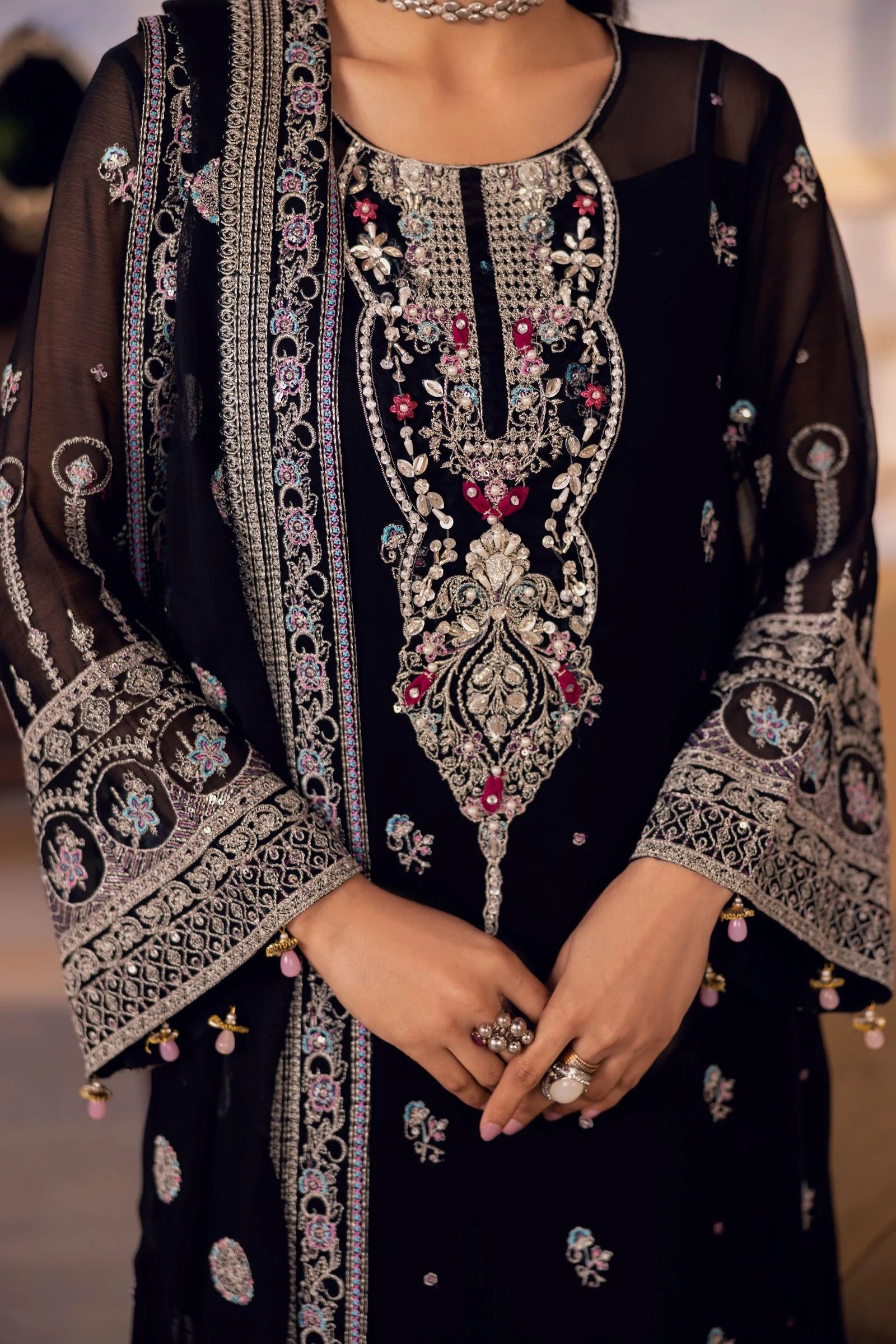 Embroidered hand embellished Neckline