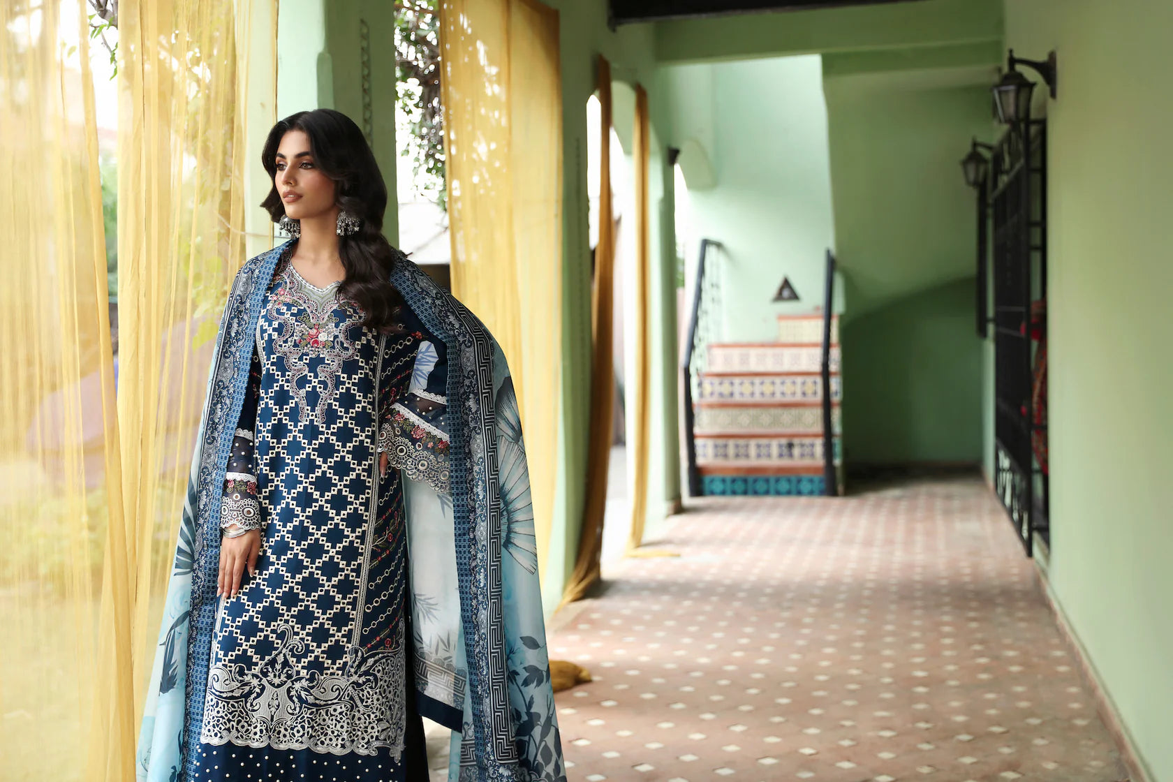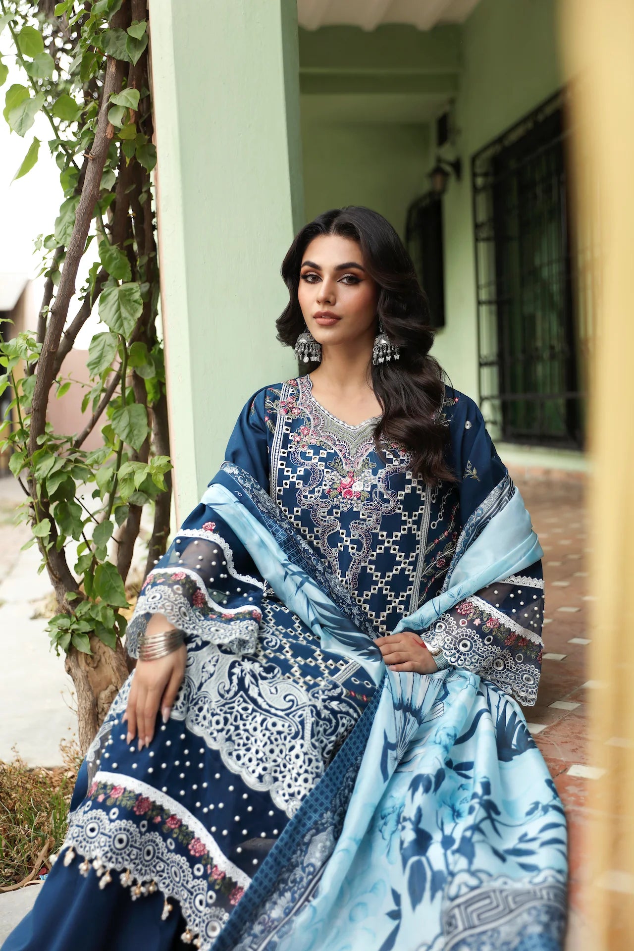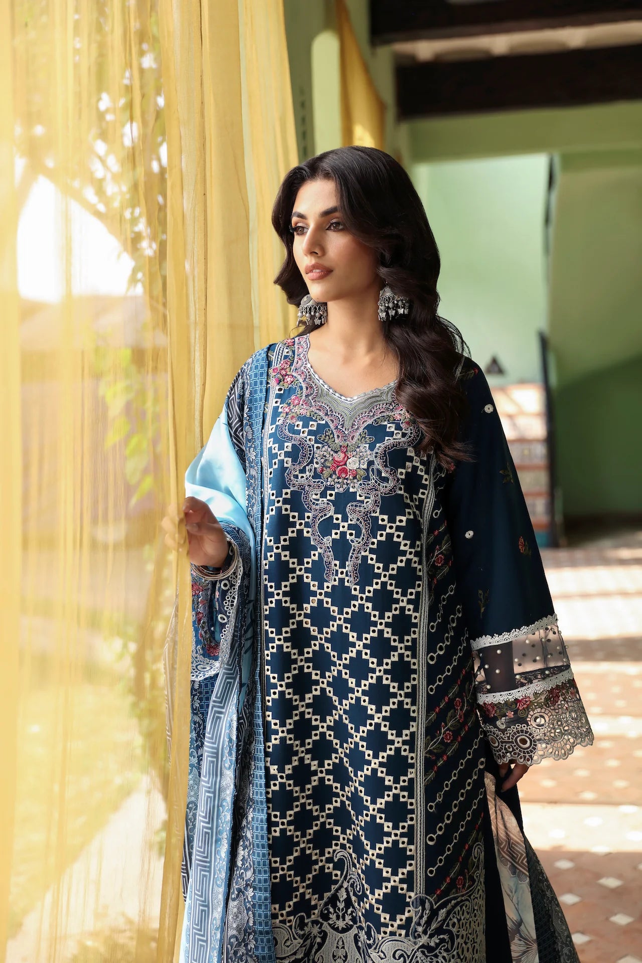 Embroidered neckline on organza 1 piece
