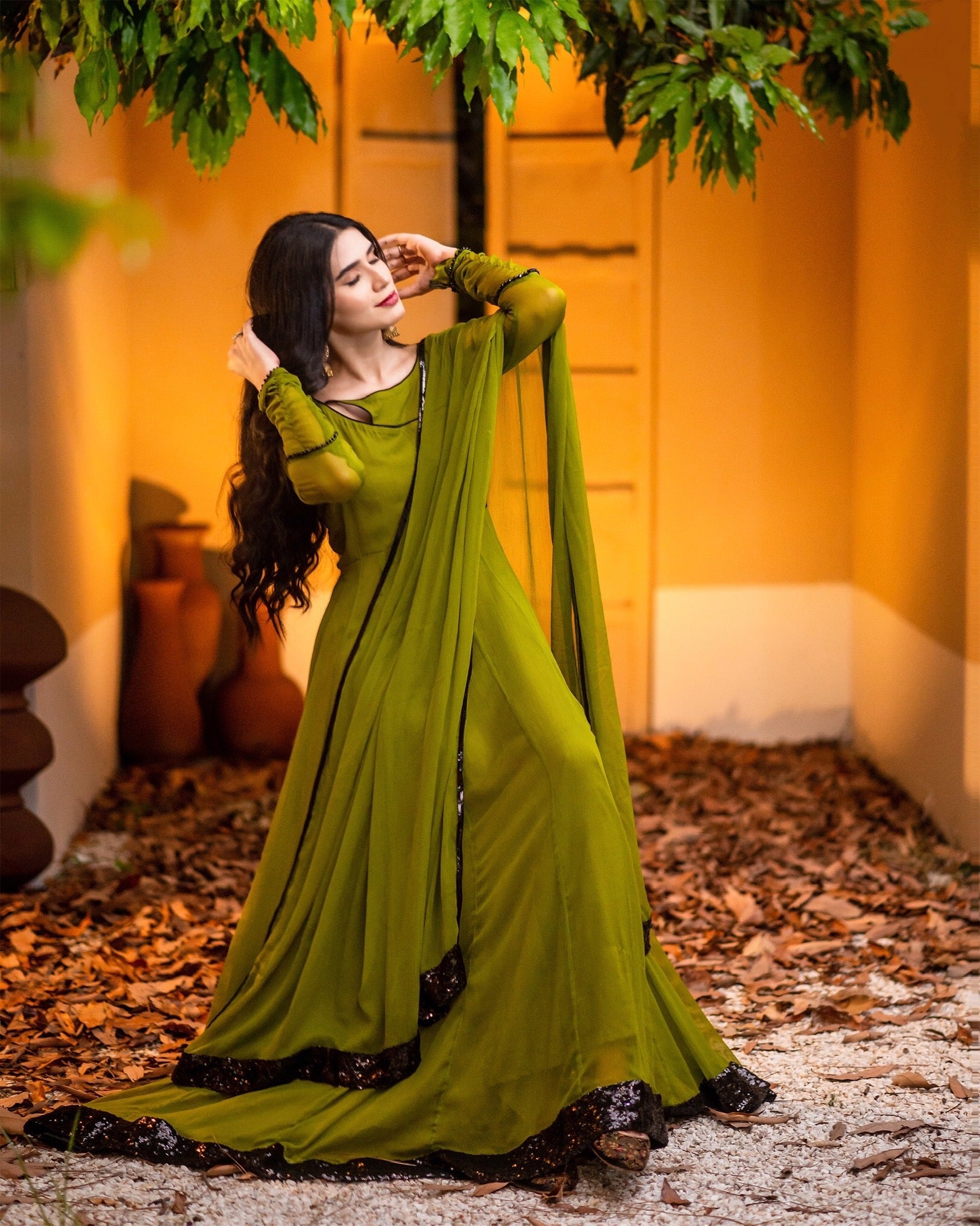 Dupatta borders are designed with sequin fabric patches and two-line sequin lace.