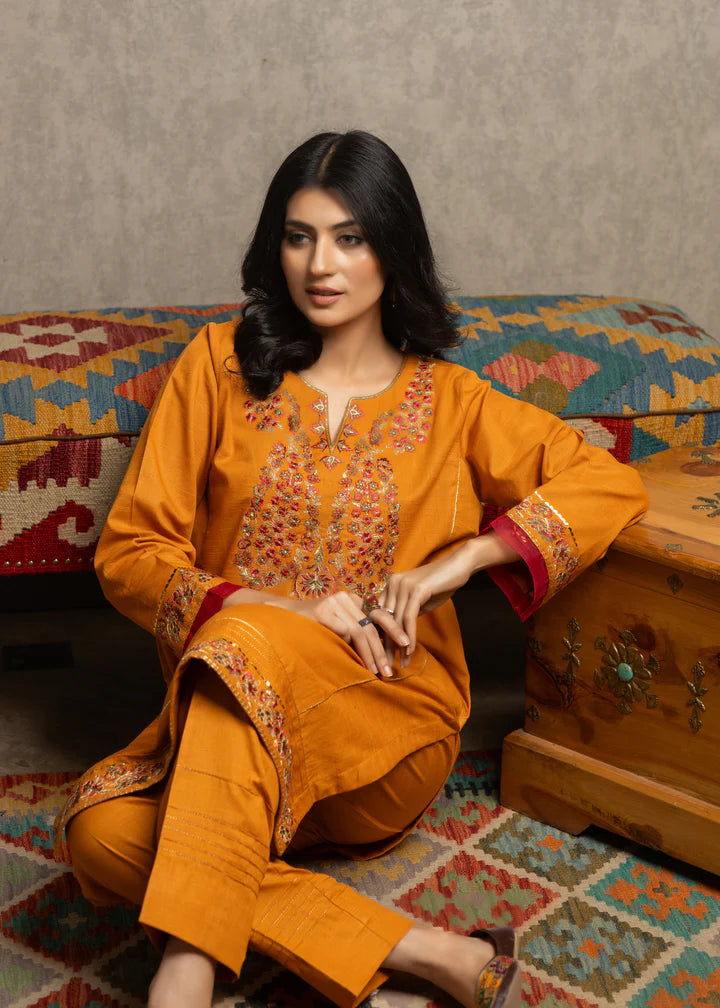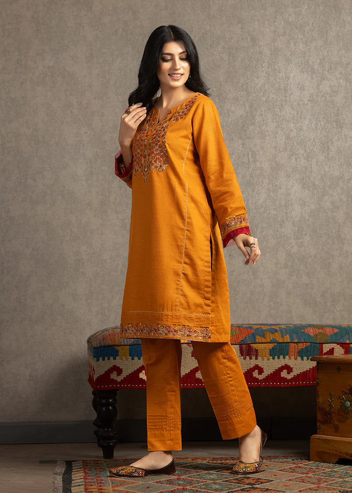 Introducing our exquisite Neckline Embroidered Dress, a perfect fusion of elegance and modernity. This stylish kurta-cut ensemble boasts a trendy look that effortlessly combines tradition with contemporary fashion in trendy Mustard color. The neckline is adorned with intricate embroidery, adding a touch of sophistication to the overall design. The dress is complemented by meticulously crafted pintax details on the trousers, creating a harmonious and stylish ensemble. Elevate your wardrobe with this chic and versatile outfit, perfect for both formal and casual occasions. Experience the beauty of craftsmanship and trendsetting style with our Neckline Embroidered Dress – a true reflection of refined fashion.