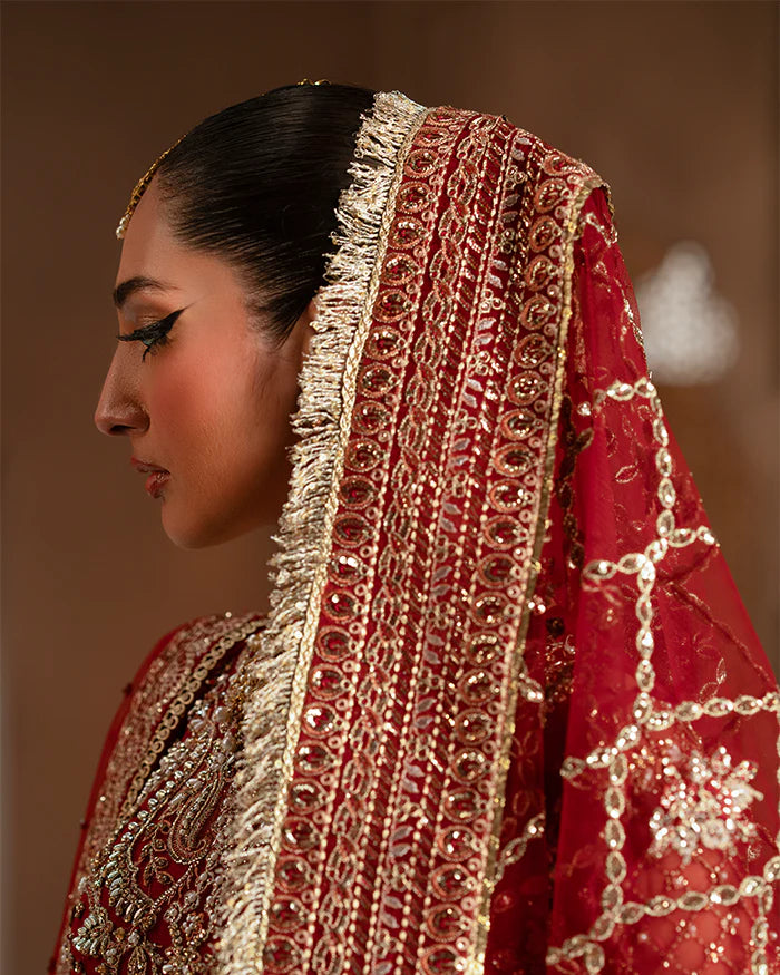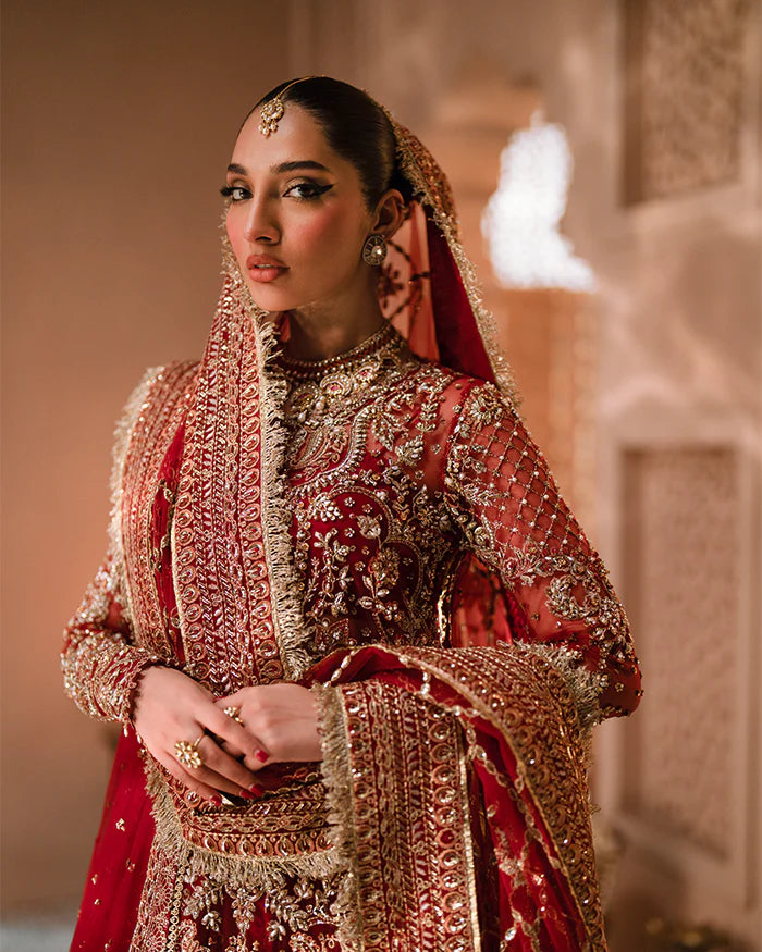 Drape yourself in the grandeur of royalty with our Red Bridal Wedding Dress, a breathtaking tribute to the legendary Mughal Mah Rani. Known for her majestic presence, strength, and timeless beauty, Mah Rani’s legacy of power and passion is exquisitely woven into this regal ensemble. Designed for the bride who embodies strength, grace, and timeless allure, this wedding ensemble is a true reflection of Mah Rani’s regal spirit. Step into your wedding day as a Mughal empress old, radiant, and unforgettable.