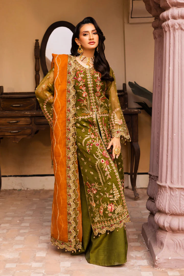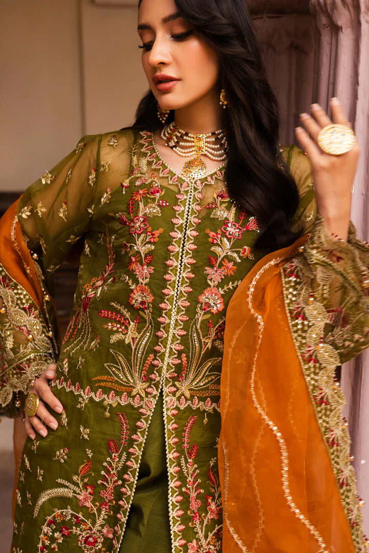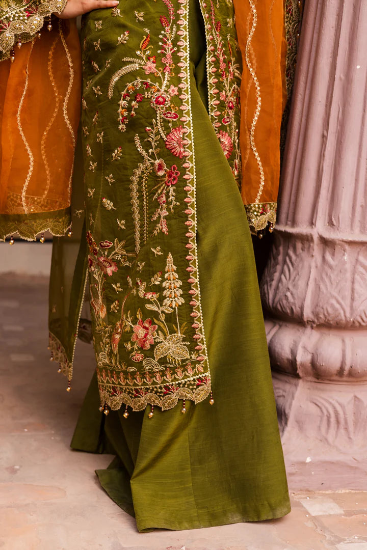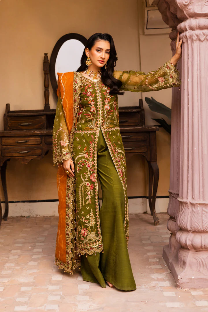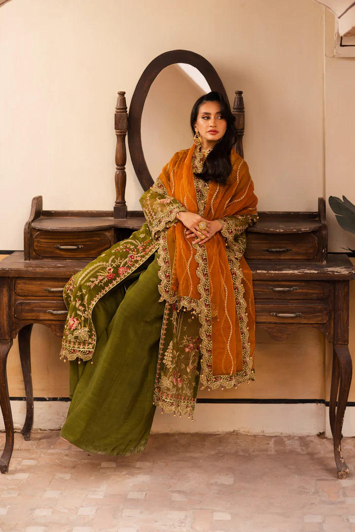 💚 MW 04 – Mehndi Green Gown with Rust Orange Dupatta