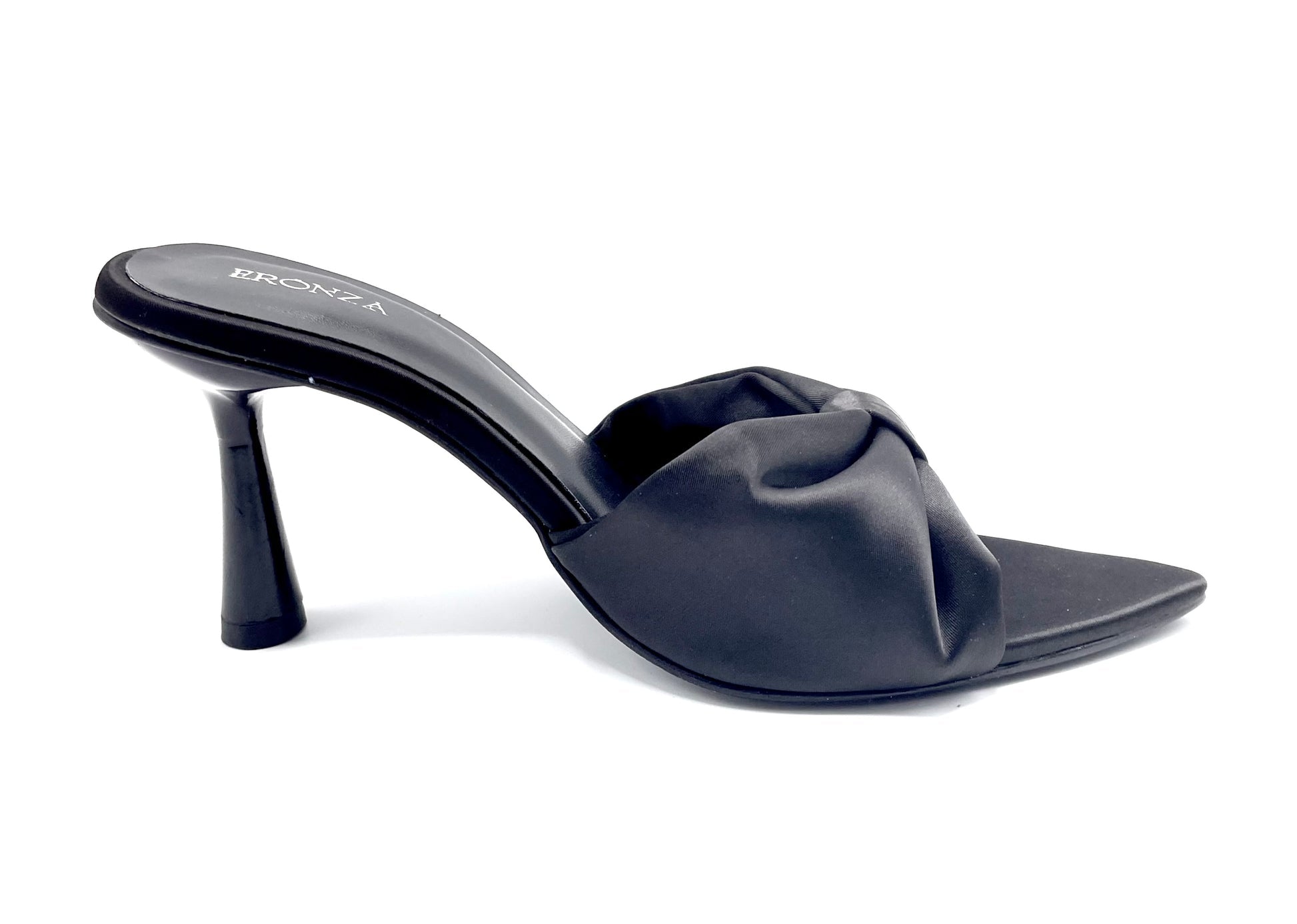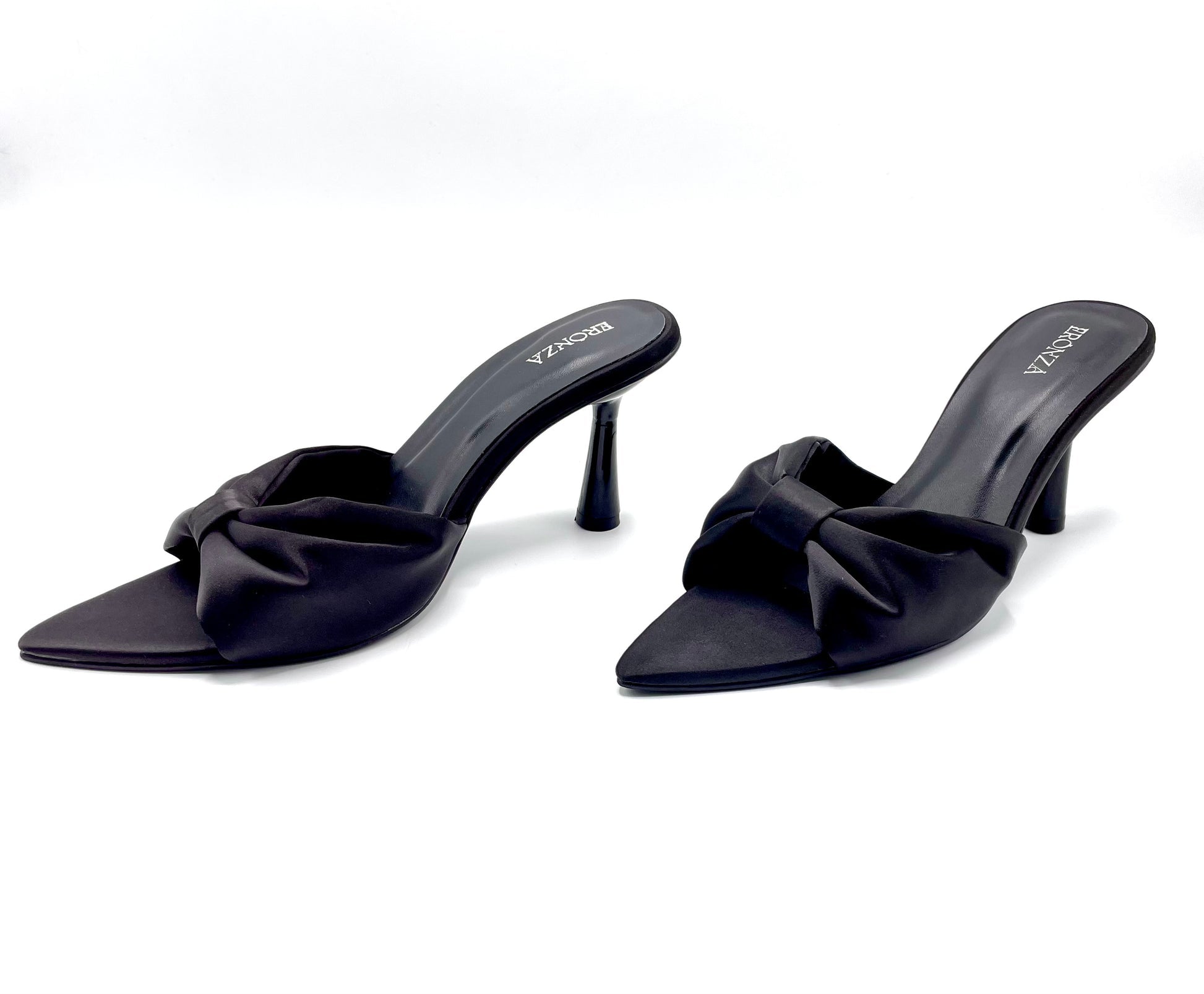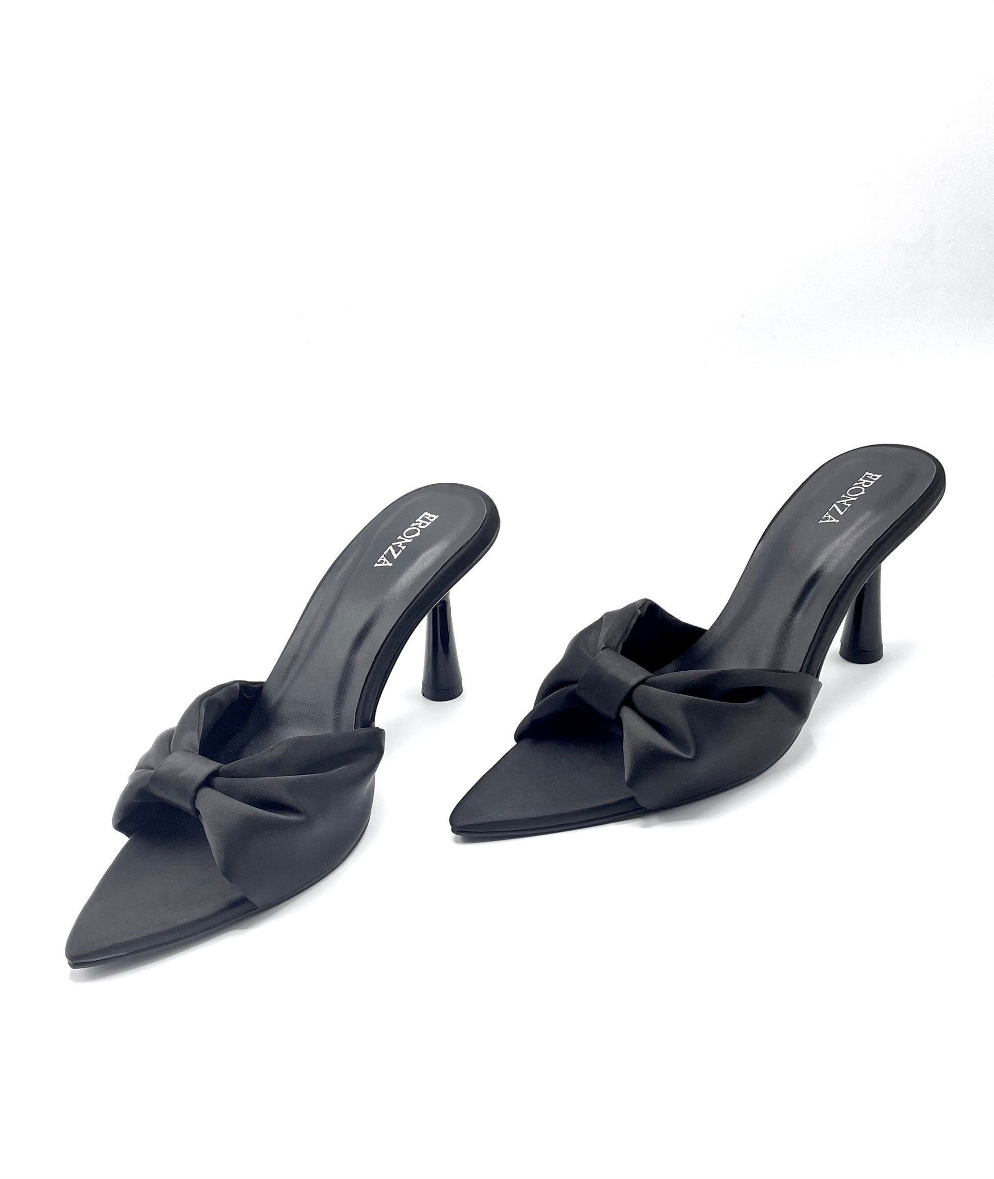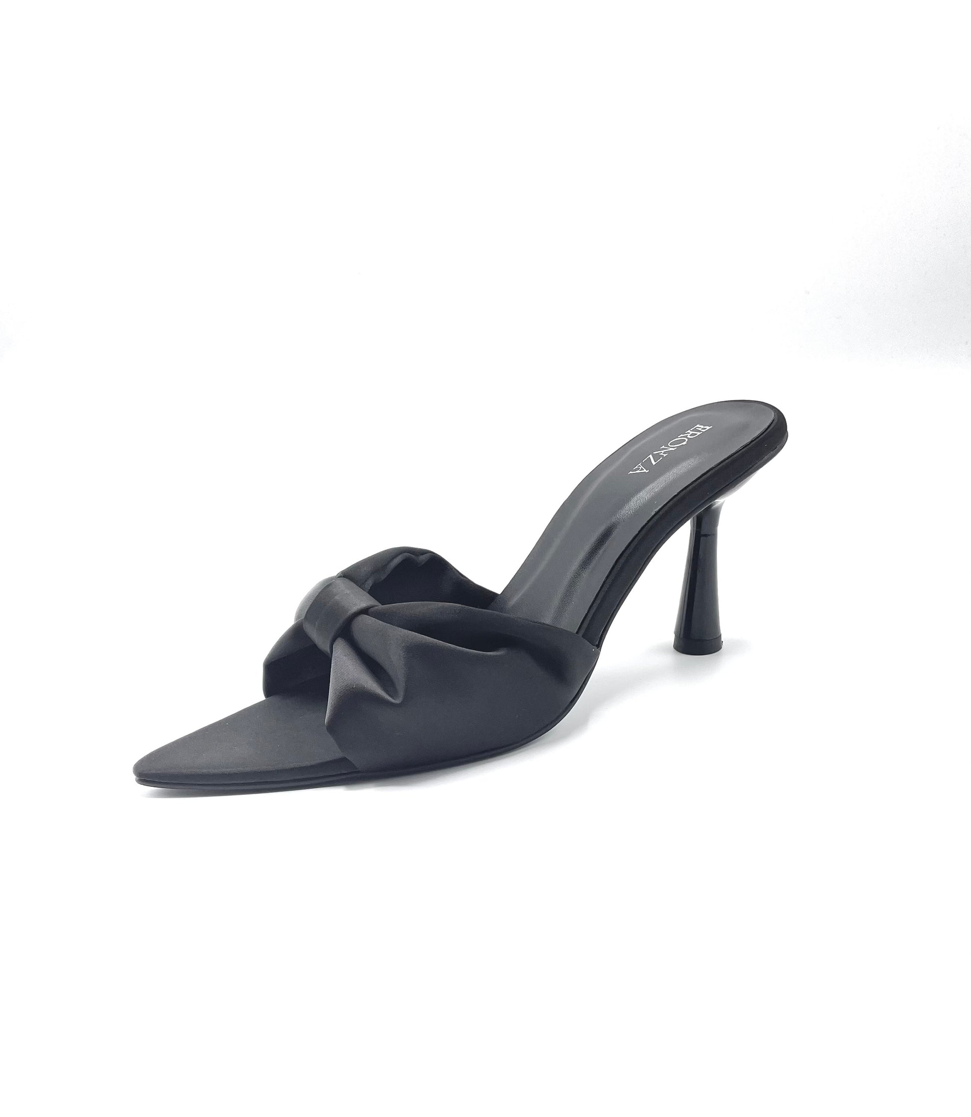 Crafted from lustrous satin, this pointed-toe mule features a gracefully sculpted 3.5-inch heel, offering just the right lift for refined poise and all-day wearability. The oversized knotted bow detail adds a touch of architectural drama, making it the perfect silhouette for evenings out, exclusive events, or when you simply want to feel unapologetically powerful.