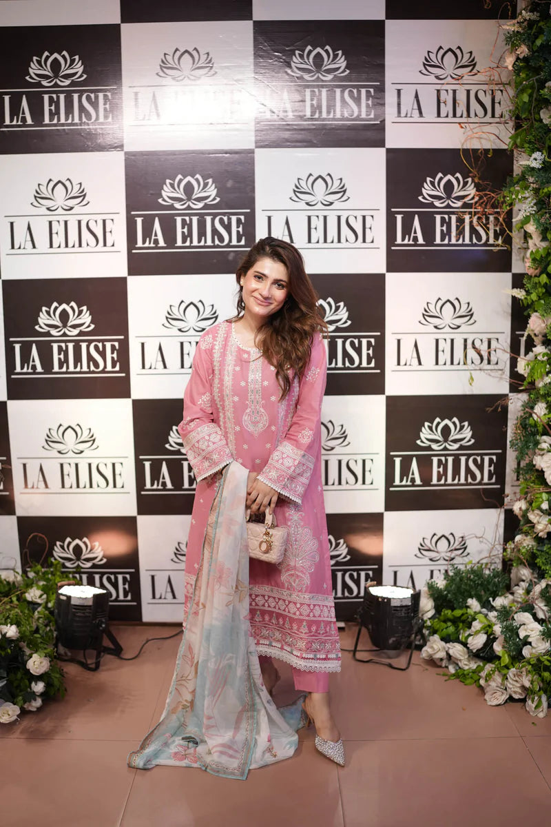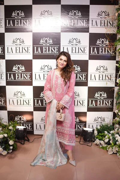 A timeless pink ensemble featuring dyed embroidered lawn shirt, paired with a dyed cambric trouser. The look is finished with a printed silk dupatta, adding elegance and versatility to your wardrobe.