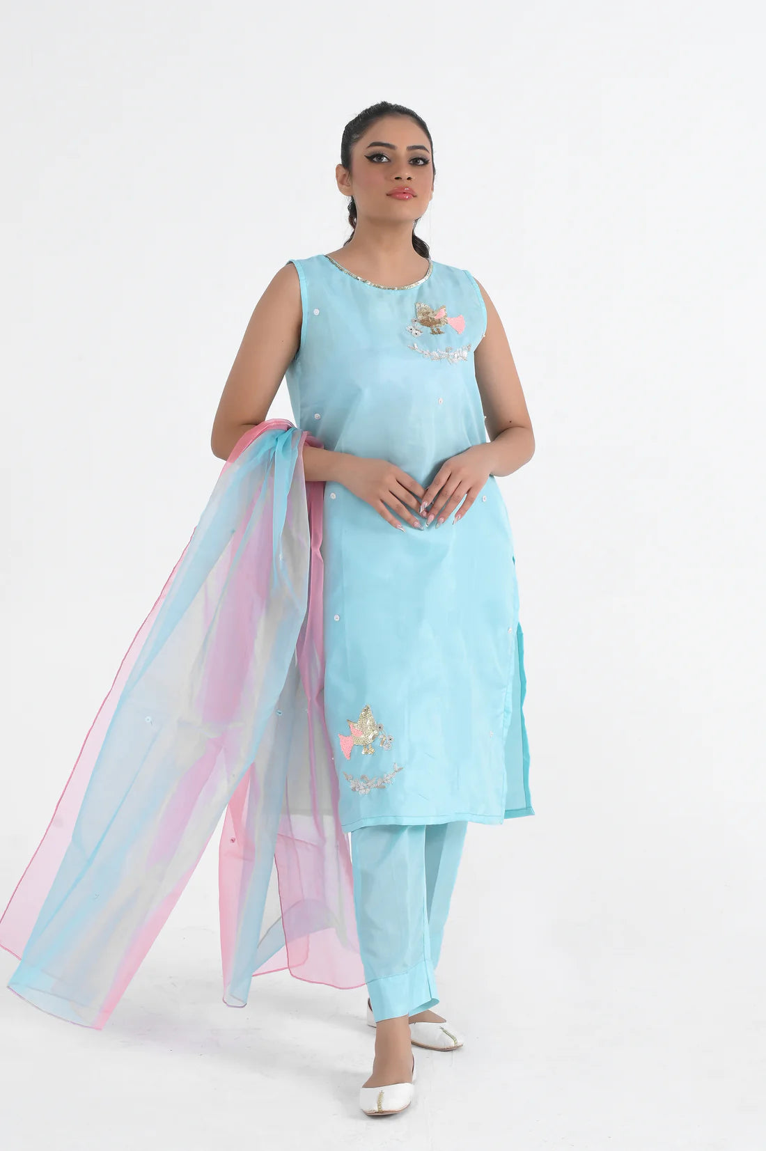 Fabric: kattan Silk Shirt and Trouser, Organza Dupatta.