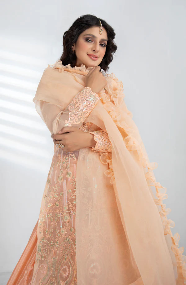 Pearl is a truly luxurious creation. Crafted with exquisite paisley patterns, sequence and thread embroidery, intricate puff sleeves, and a frill duppata, this lehngha is a beautiful ode to the iconic barbie doll. Revel in its charm and beauty for the perfect occasion.