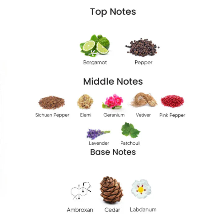 Notes: Sichuan Pepper, Lavender, Pink Pepper, Vetiver, Patchouli,