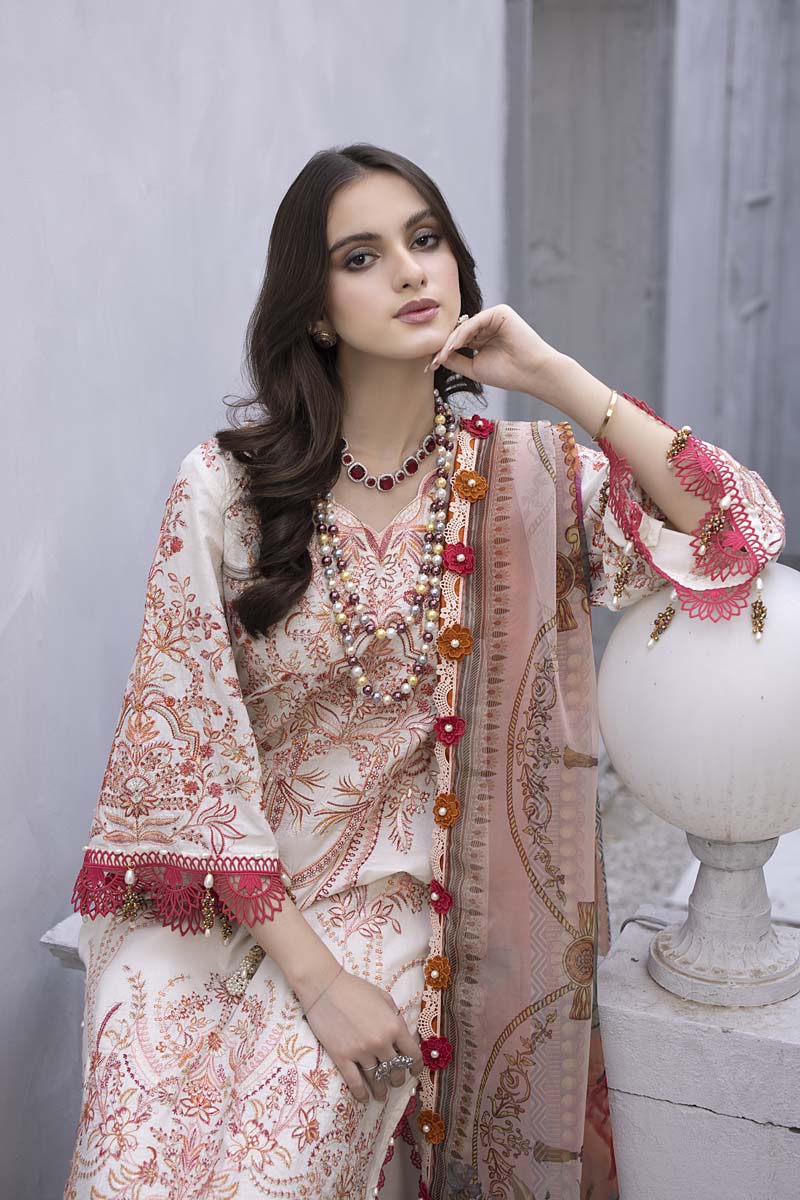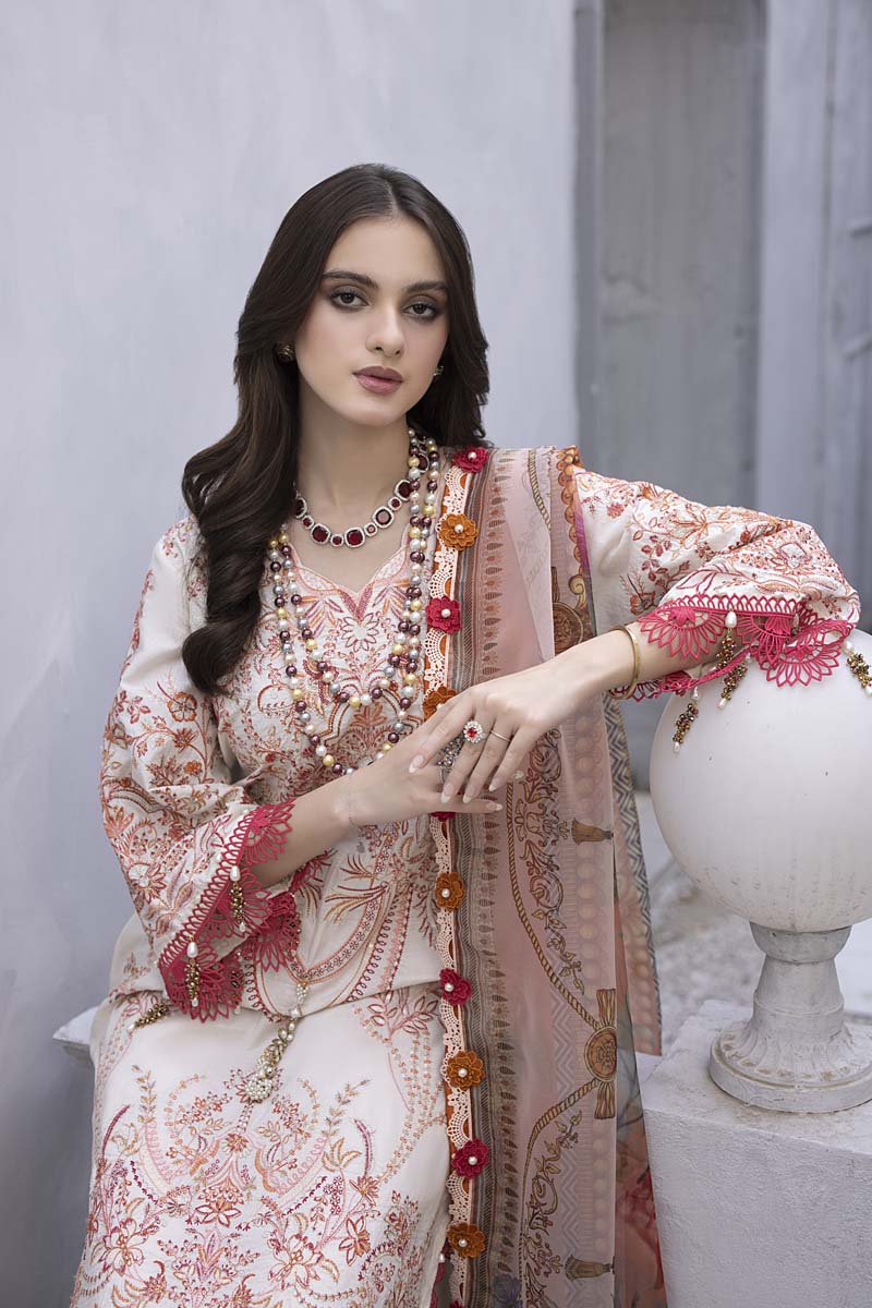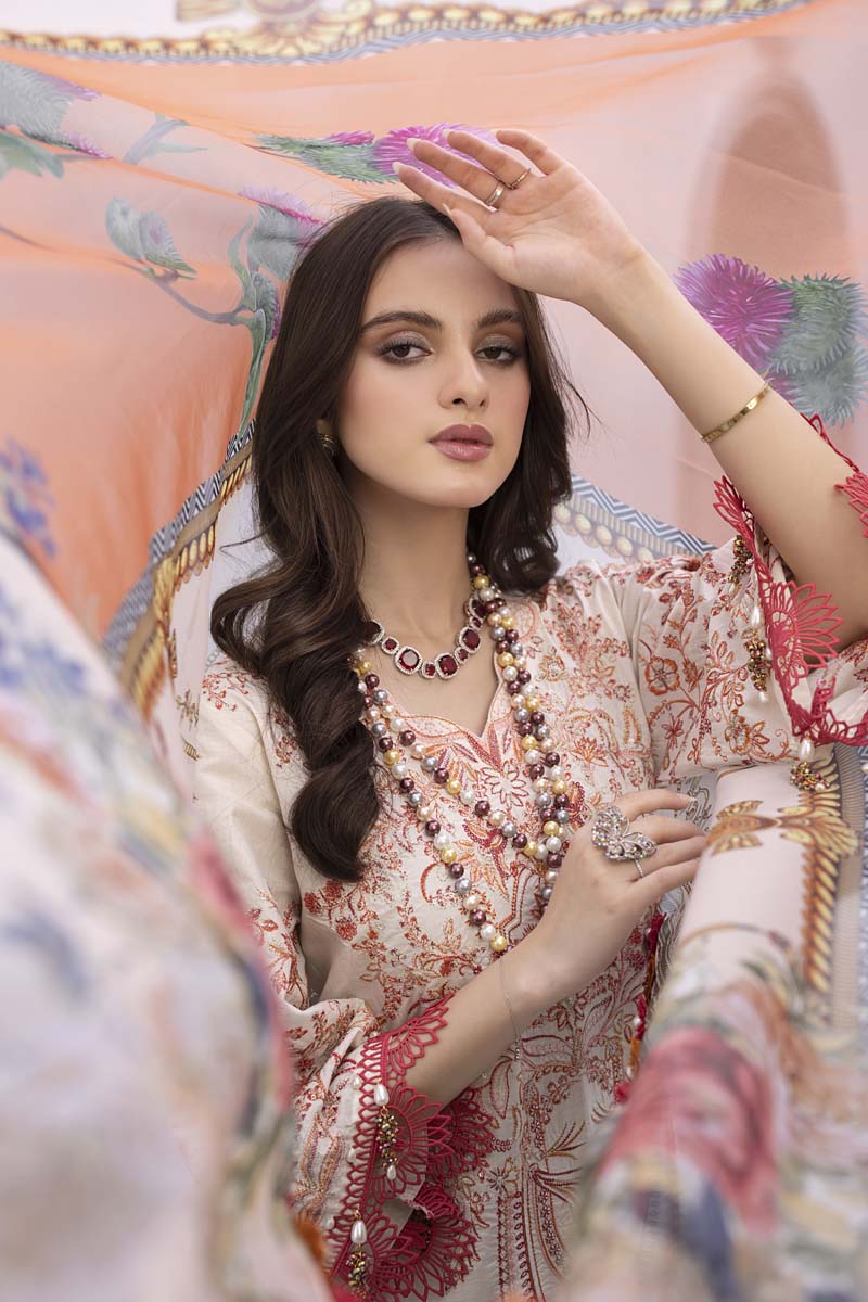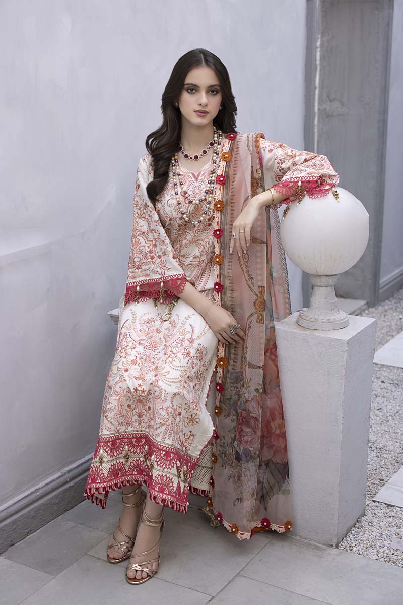 Includes: Embroidered Shirt, Embroidered organza Dupatta, Lawn Trousers