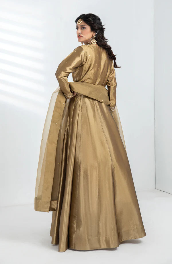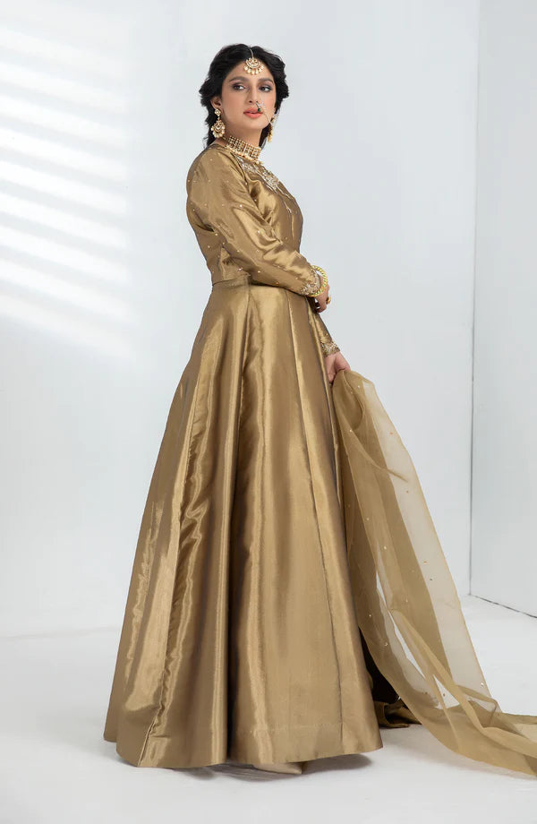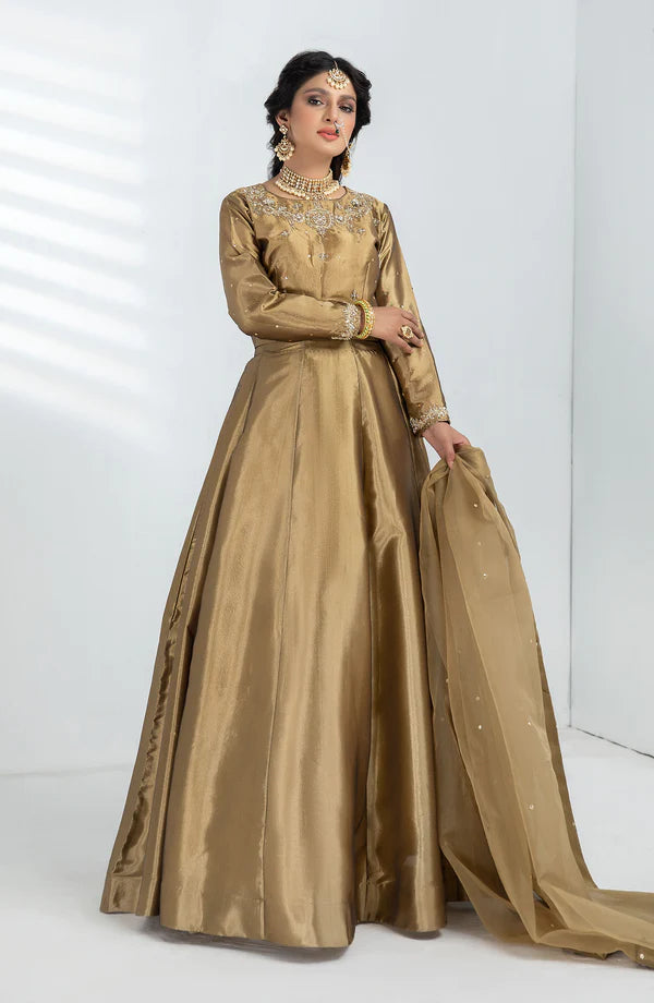 Crafted from a luxurious gold fabric and featuring traditional handwork, SHEHNAI is the perfect choice for a formal occasion. Be it a wedding, nikkah, or mehndhi event, this striking chooli lehngha will make you stand out in the best possible way. Feel elegant and exclusive in this exquisite wedding wear.