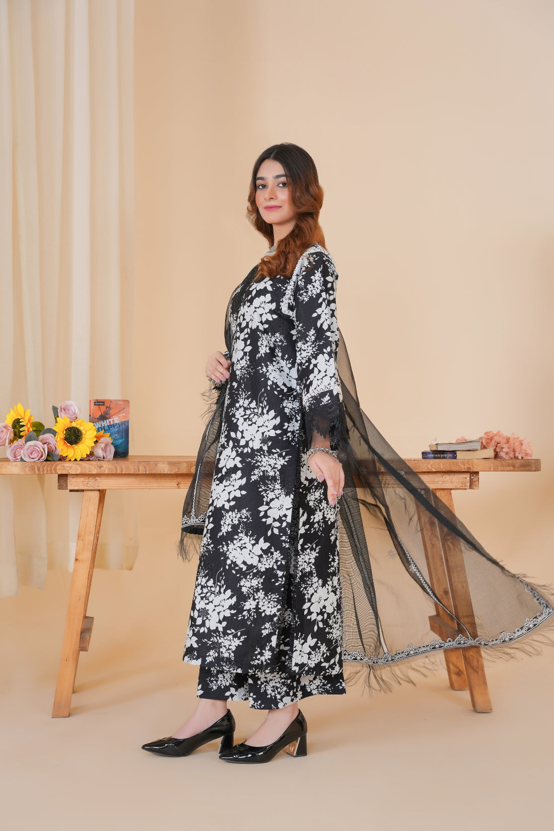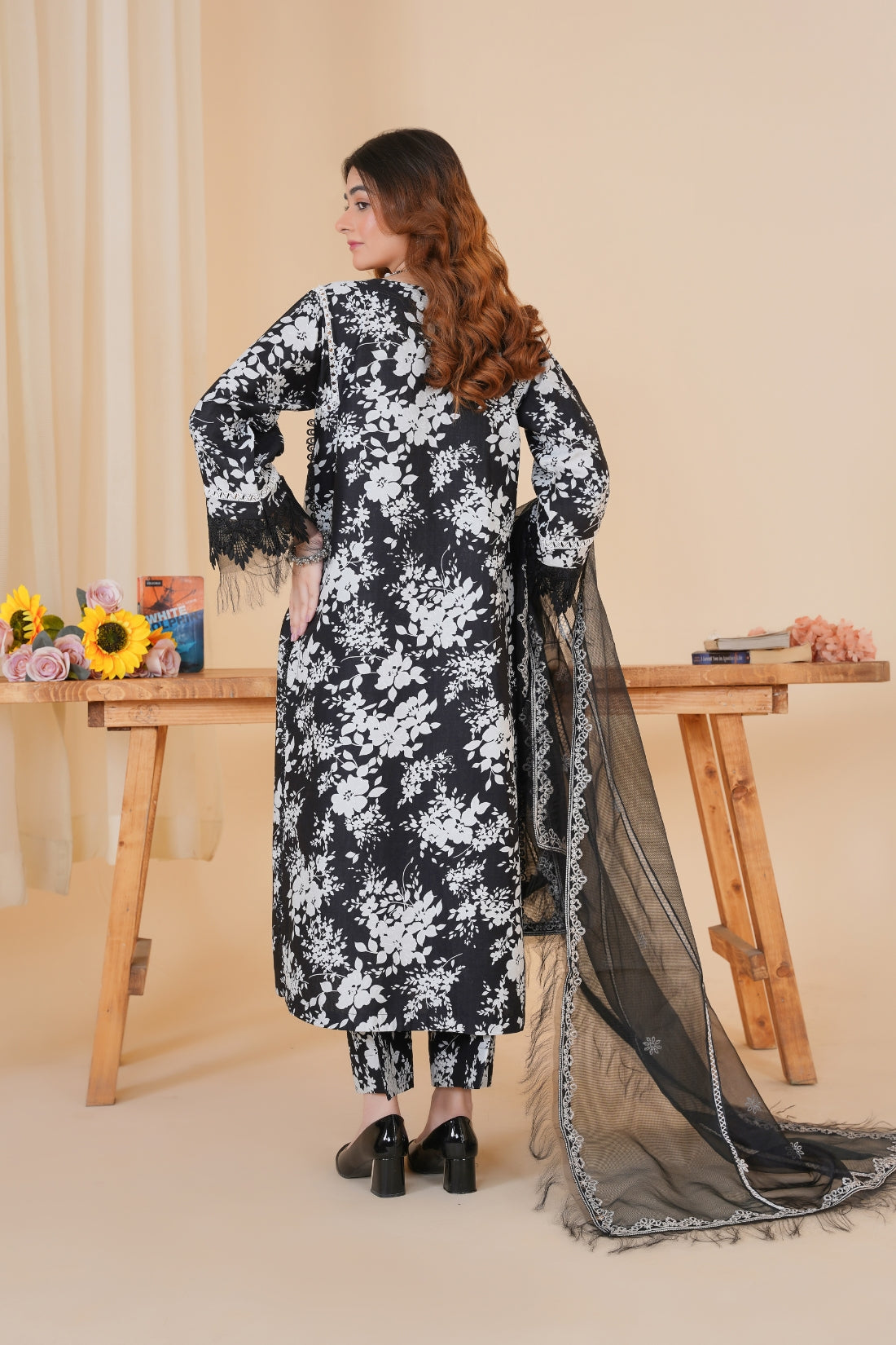 This elegant three-piece printed lawn suit is designed for both style and comfort. The ensemble includes: