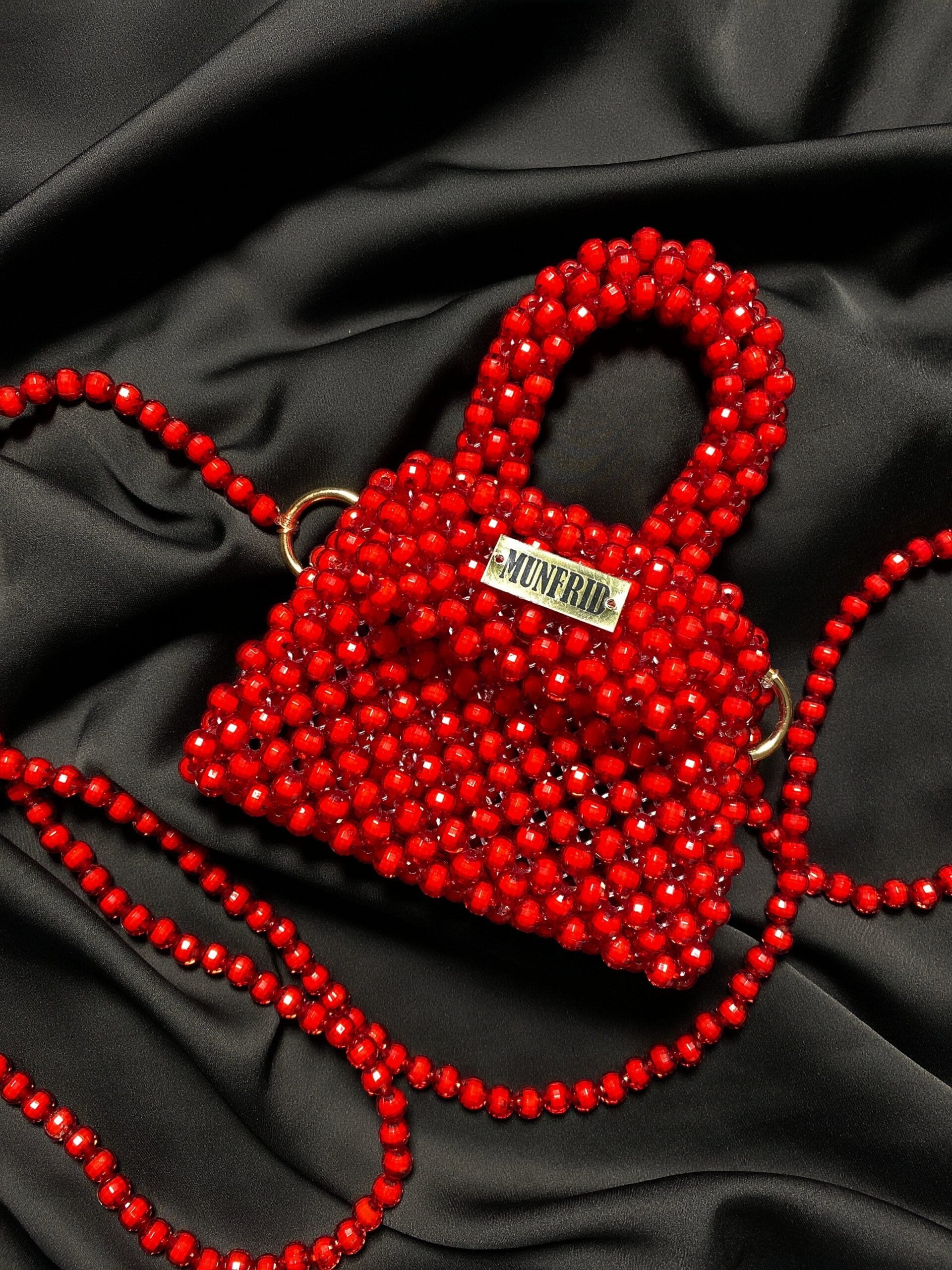 Acrylic beads and strap detailing on a setting Unlined
