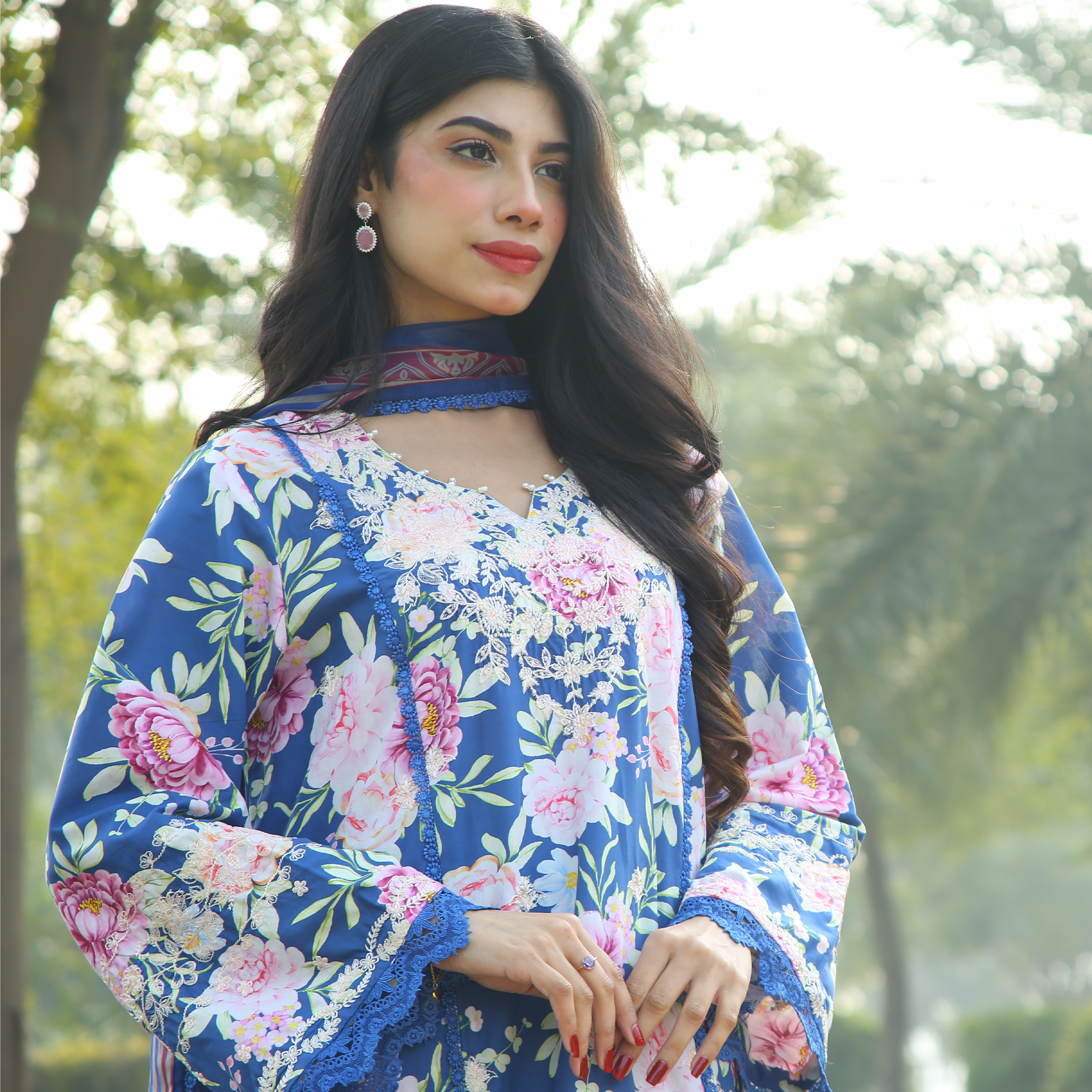 Embroidered Front Left Panel (Printed Lawn) 1 Piece
