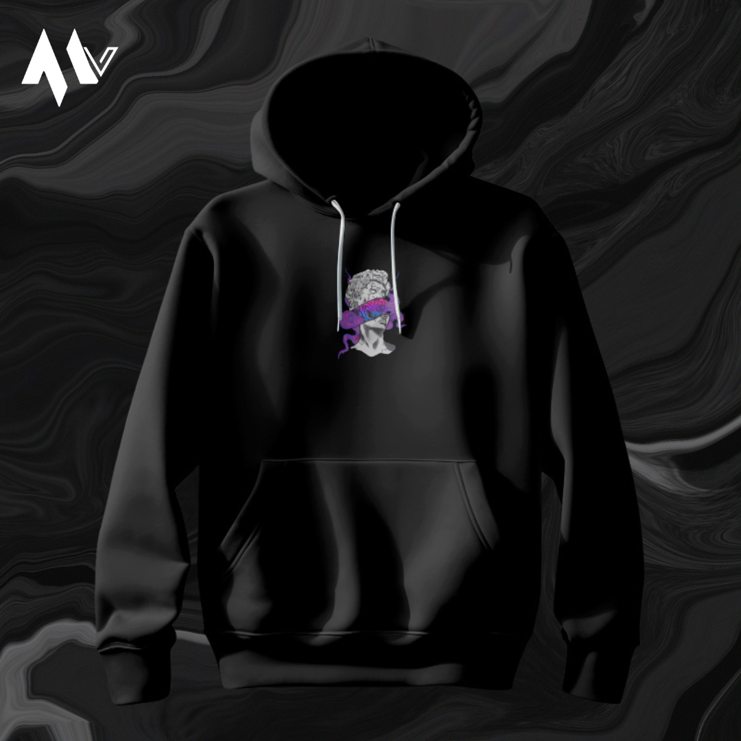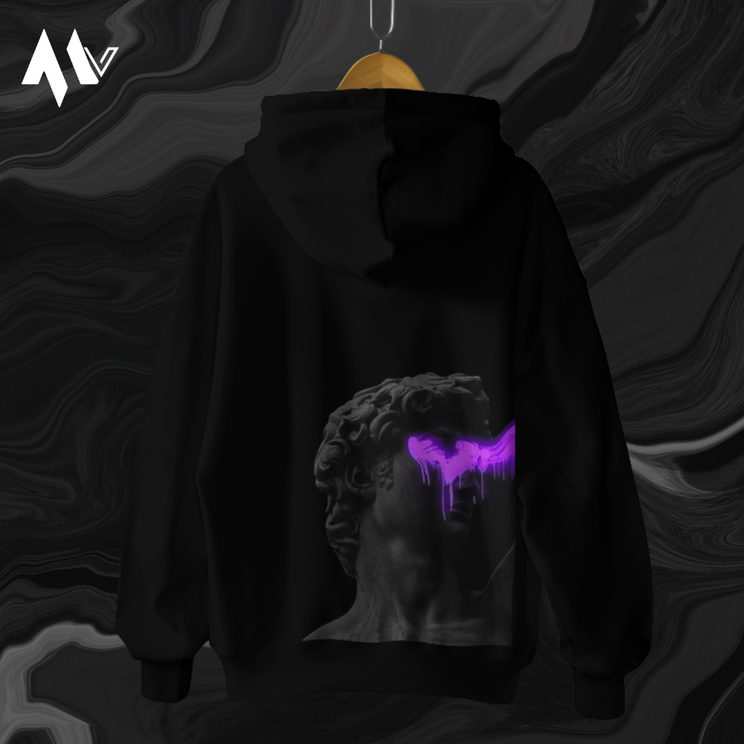 Turn heads with this bold and artistic design! Featuring sleek black fabric and a striking violet accent, it’s perfect for those who love making a statement.