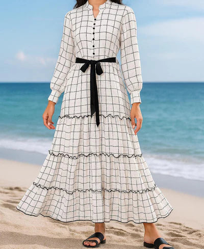 🌸 Elegant Check Print Dress 🌸