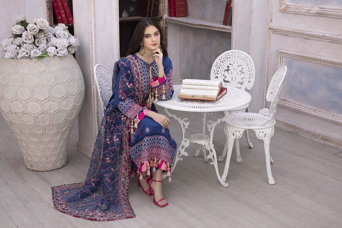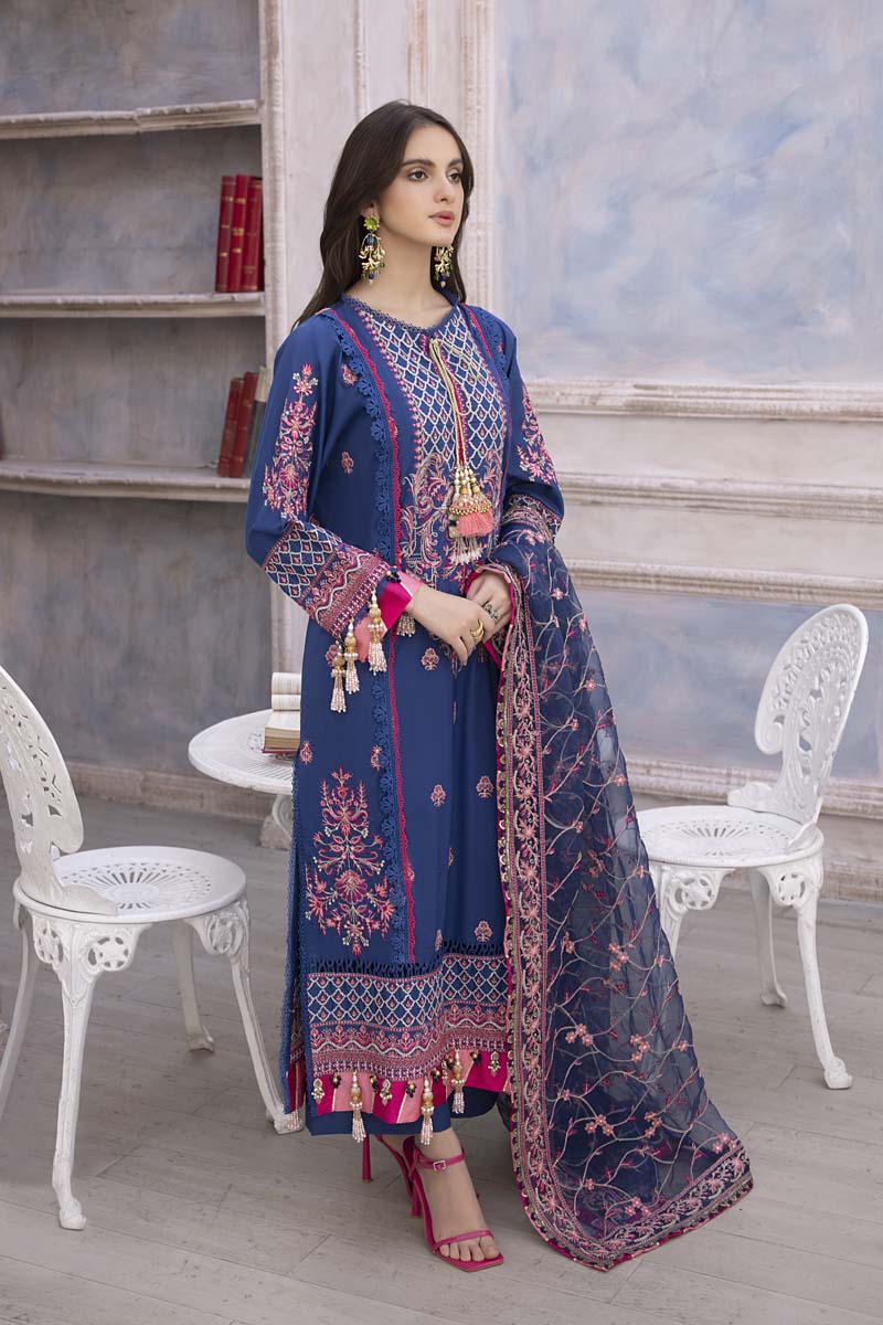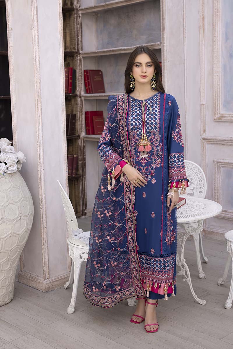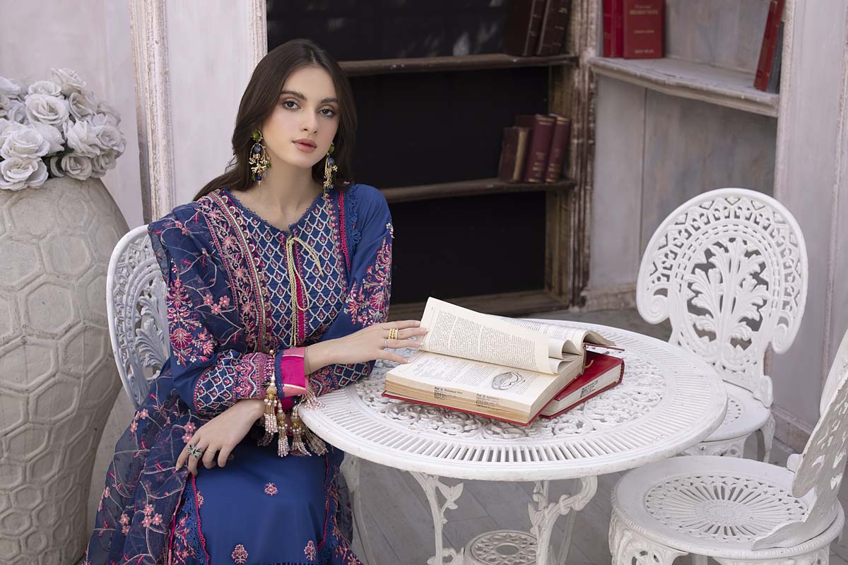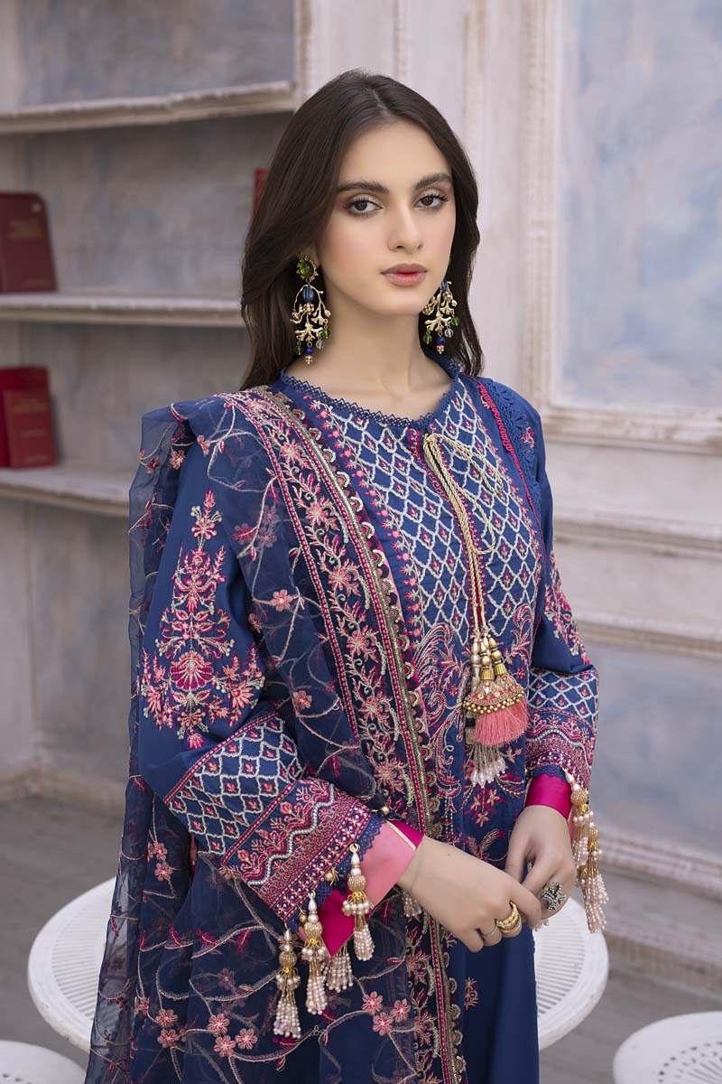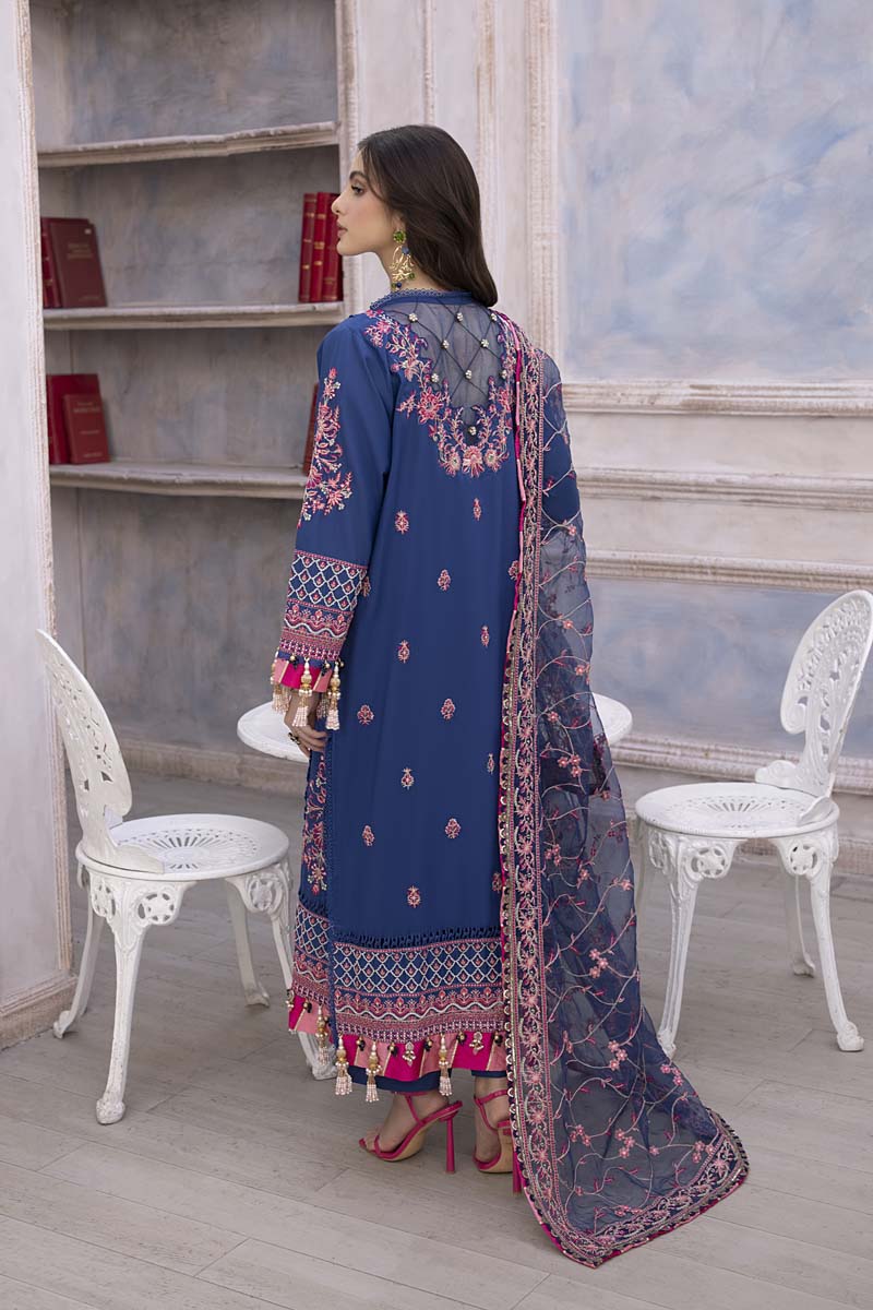 Radiate charm in Zebaish, a stunning blue ensemble adorned with intricate embroidery and exquisite details. Designed in premium summer lawn, it features an embroidered shirt, Lawn trousers, and a delicate embroidered organza dupatta, perfect for semi-formal and festive occasions.